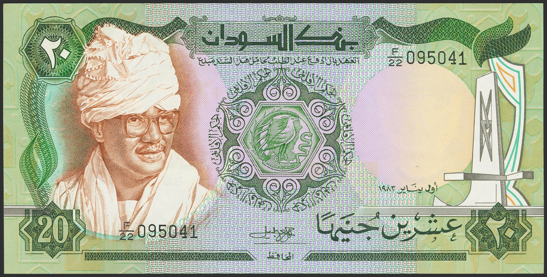 SUDAN. 20 Sudanese Pounds. 1983. Bank of Sudan. (Pick: 28). More than Extremely Fine.