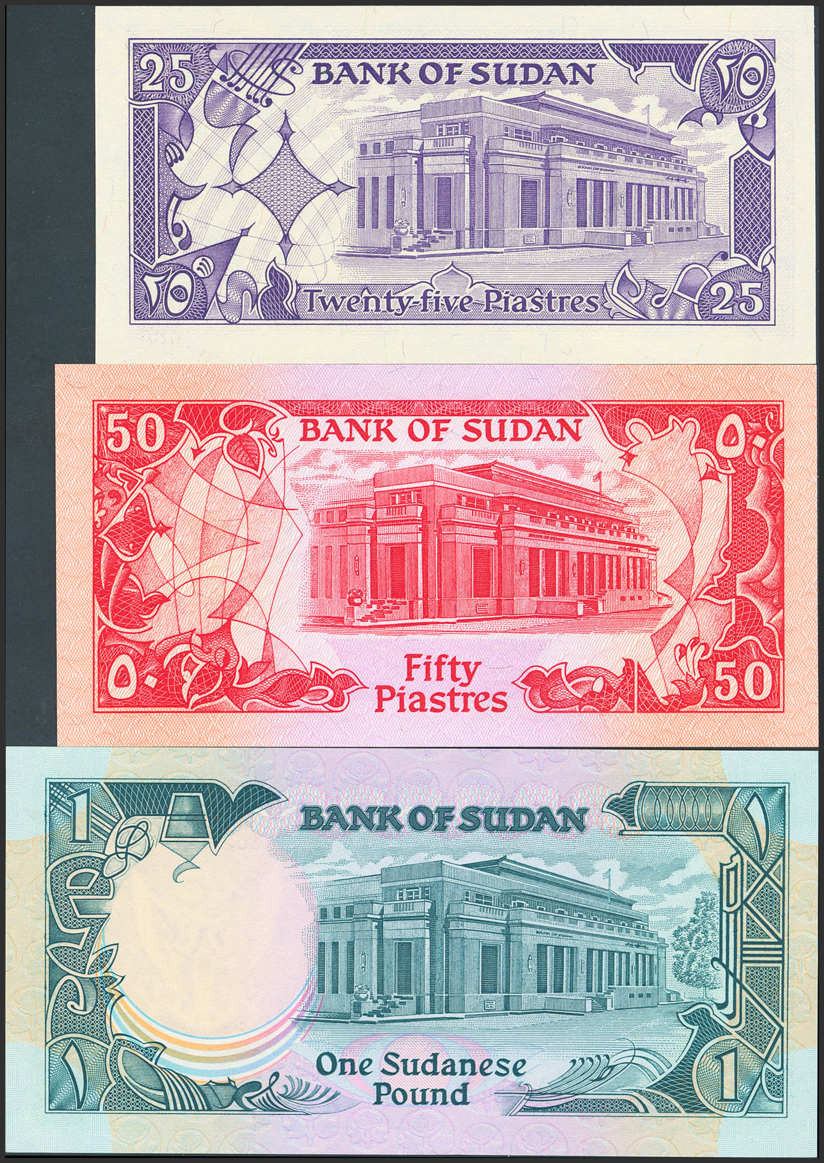 SUDAN. Lot of 3 notes from 25 Piastres to 1 Sudanese Pound. 1987. Bank of Sudan. (Pick: 37, 38, 39). Uncirculated.