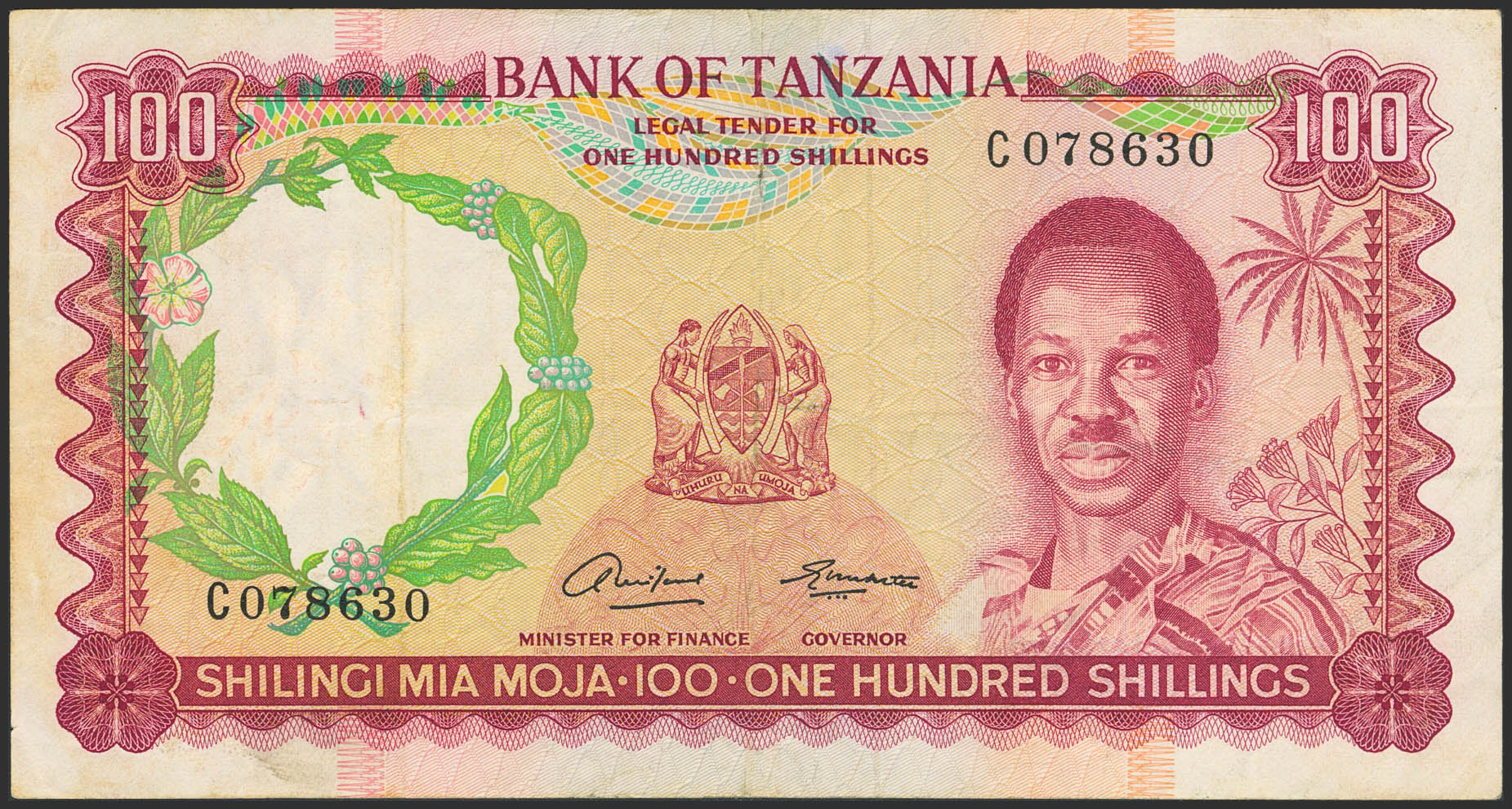 TANZANIA. 100 Shillings. (1966ca). Central Bank. (Pick: 5a). More than Very Fine.