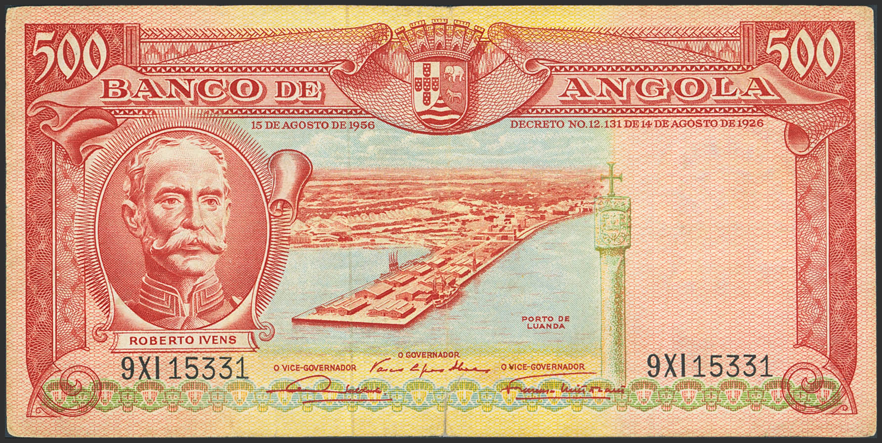 ANGOLA. 500 Shields. August 15, 1956. Bank of Angola. (Pick: 90). Restored. Very Fine.