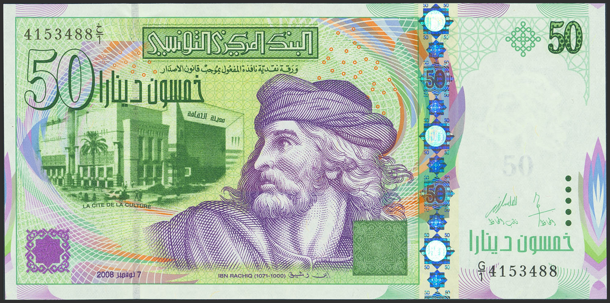 TUNISIA. 50 Dinars. 7 November 2008. Banque Centrale de Tunisie. (Pick: 91a). Uncirculated.