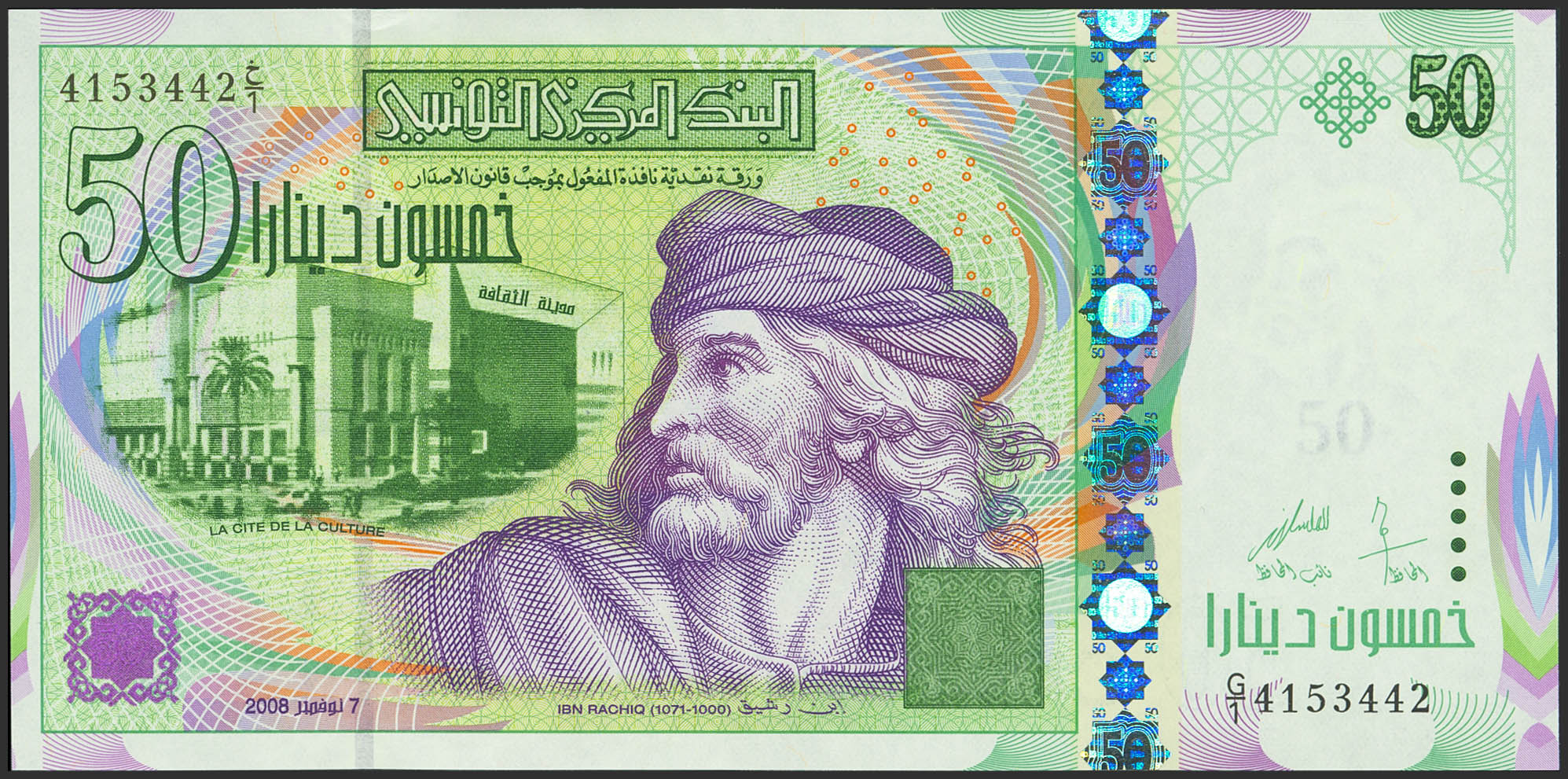 TUNISIA. 50 Dinars. 7 November 2008. Banque Centrale de Tunisie. (Pick: 91a). Uncirculated.
