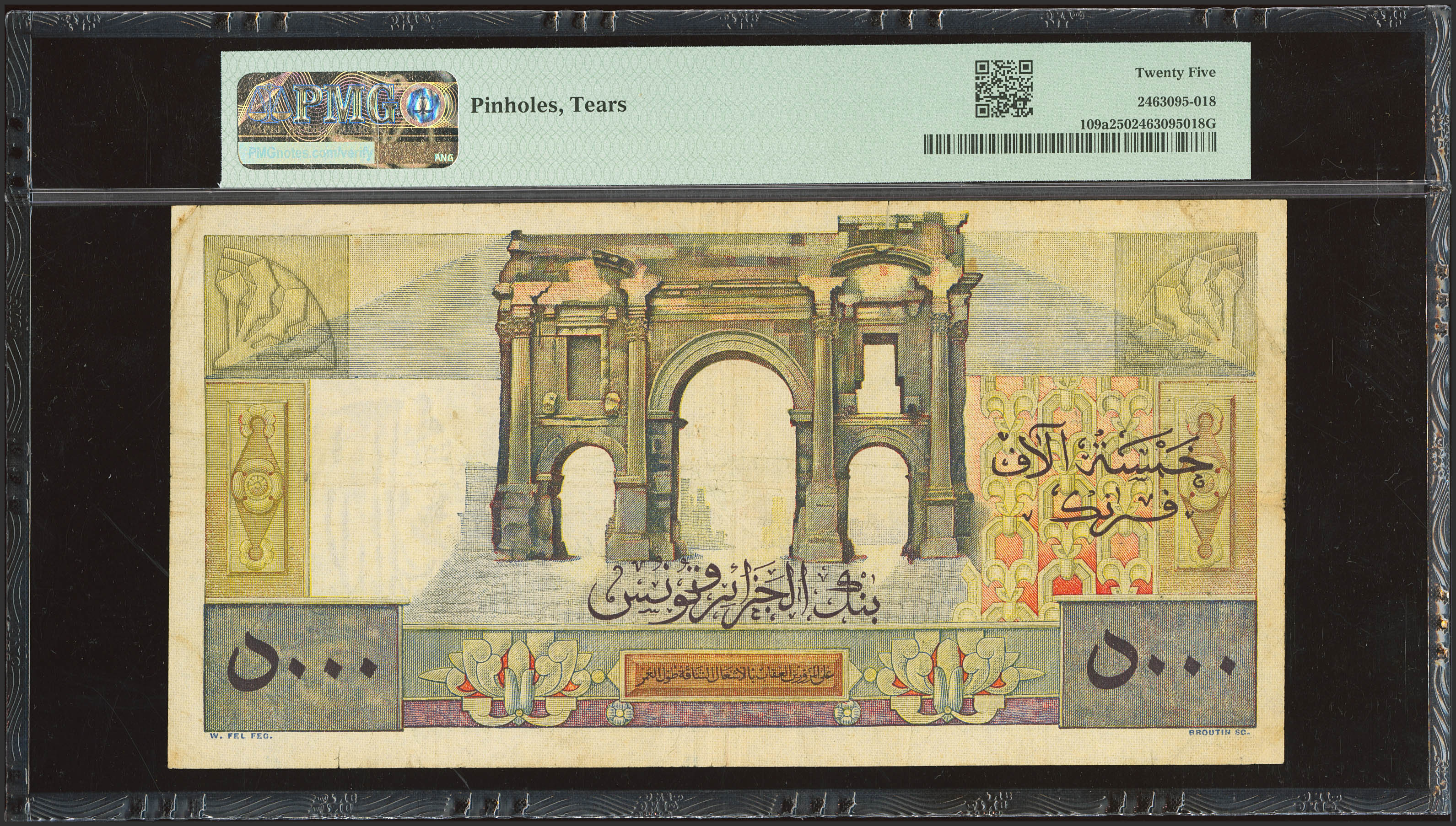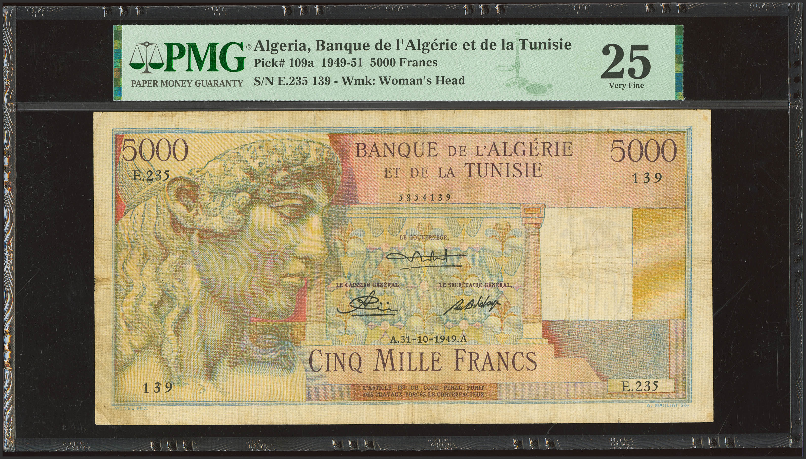 TUNISIA. 5000 Francs. 31 October 1949. Banque de l'Algerie et de la Tunisie. (Pick: 109a). PMG25 (pinholes, tears).