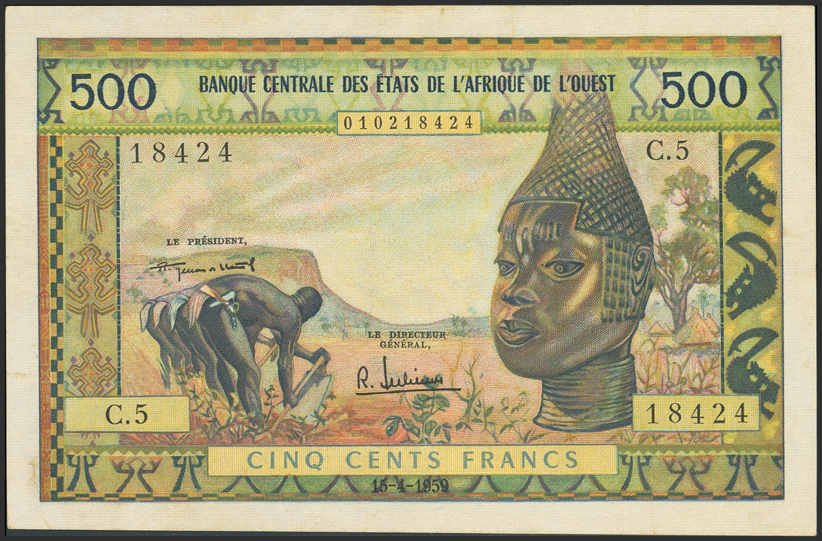 WEST AFRICAN STATES. 500 Francs. 21655. Banque Centrale des Etats de l'Afrique de l'Ouest. (Pick: 3). Extremely Fine.