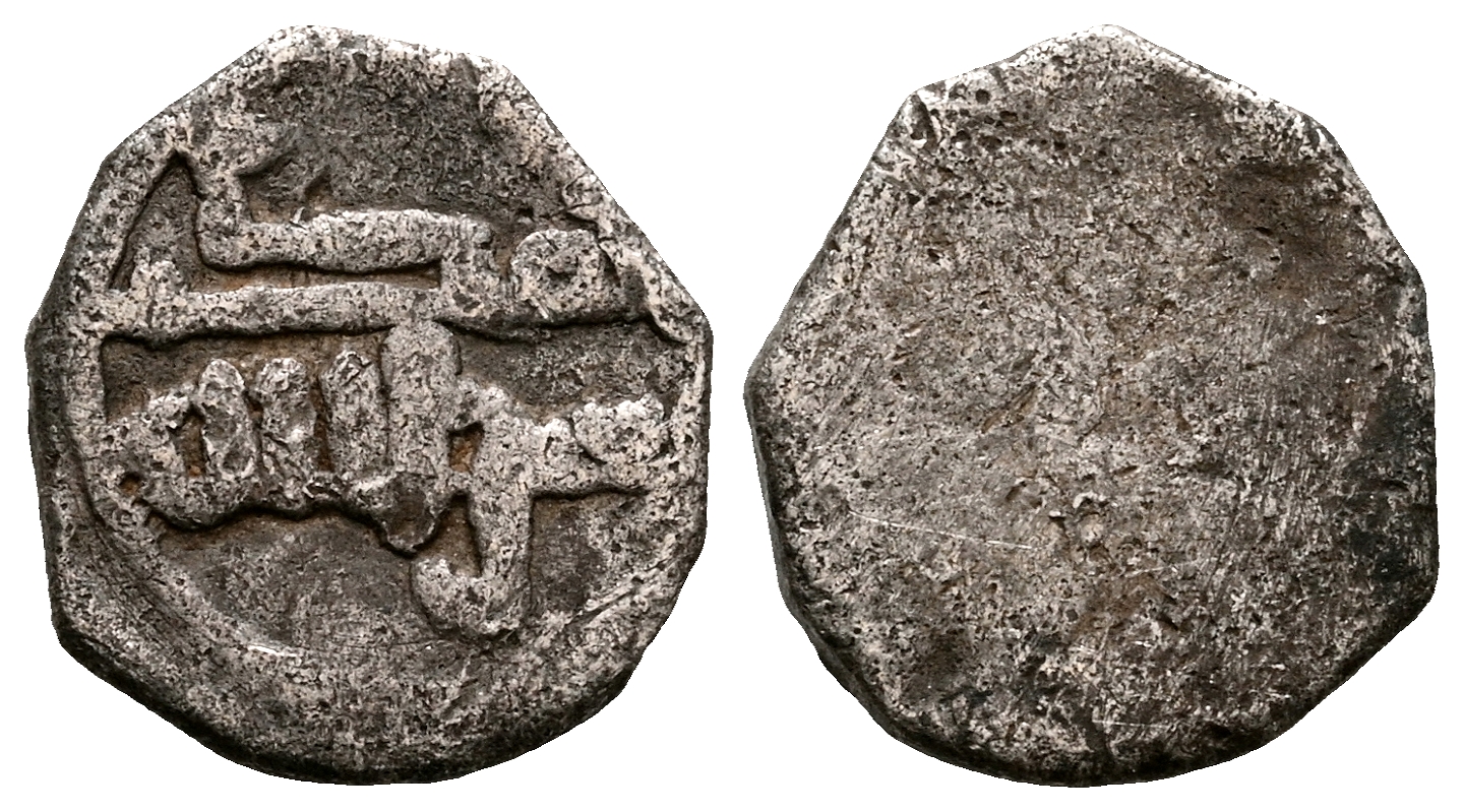 English ALMORAVIDES, Anonymous. 1/2 Quirate. (Ar. 0.29g/8mm). S/D. (Vives 2010; Benito V2). Anv: Prophetic mission in two lines: رسواالله / محمد. Rev: Isolated letter ج. Good Fine. Scarce.