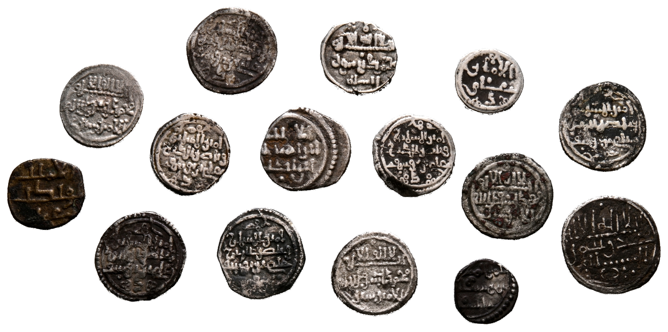 ALMORAVIDS. Interesting set consisting of 15 qirats and dividers. Of note is the variety of types and emirs. Different sizes and states of preservation. TO BE EXAMINED.