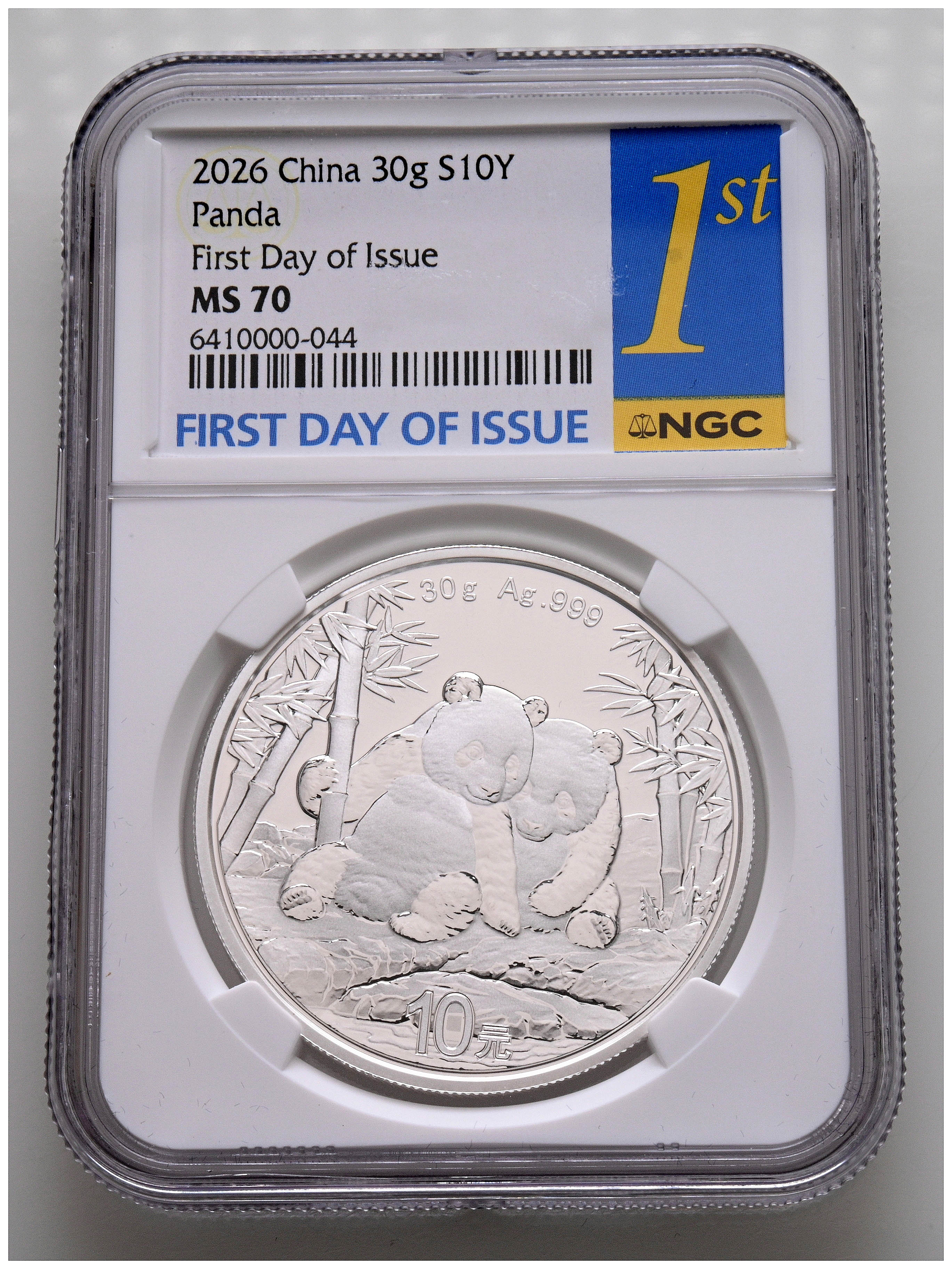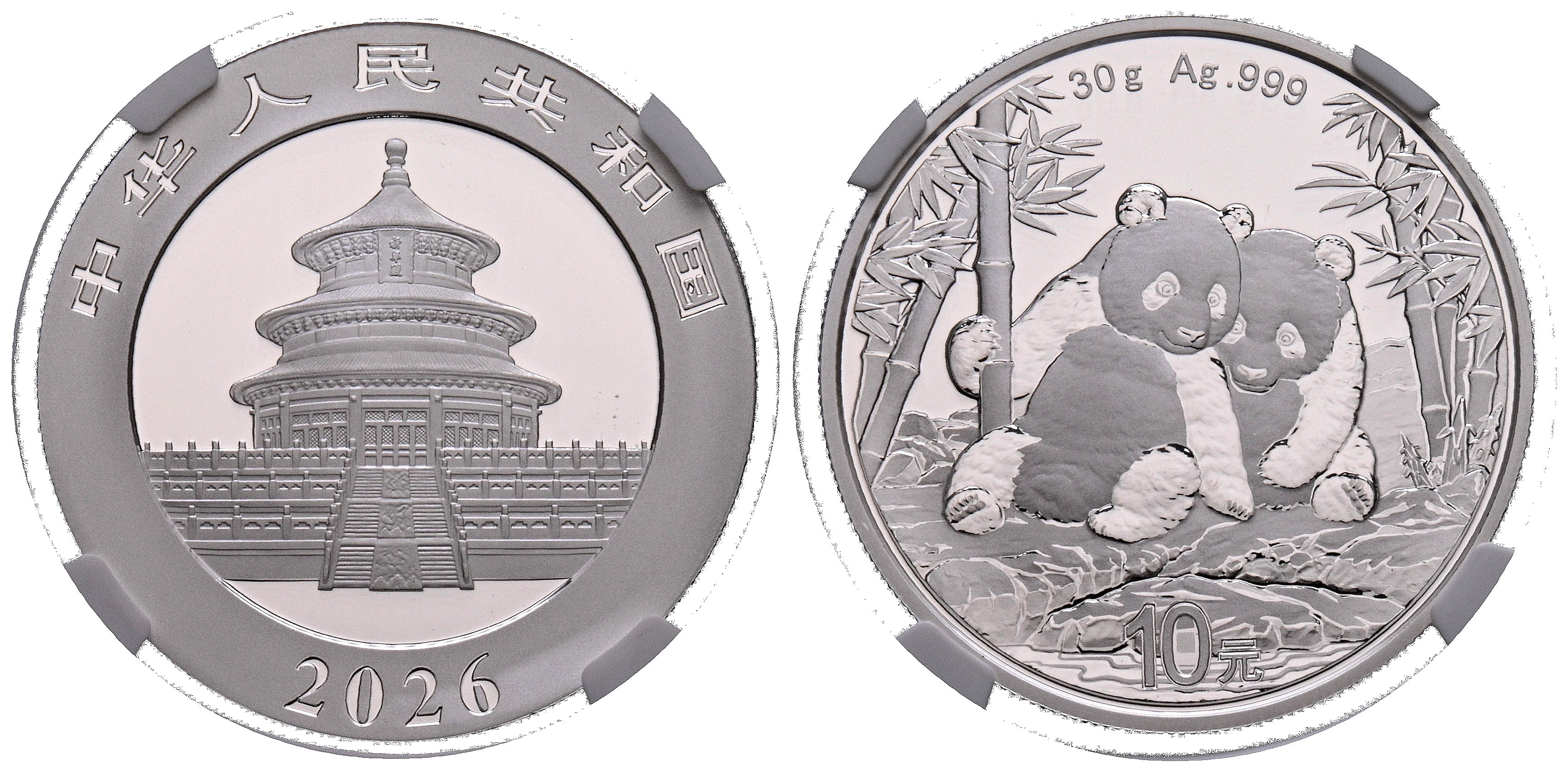 CHINA. 10 Yuan. (Ar. 30.00g/40mm)*. 2026. Panda Series. First Day of Issue. Encapsulated by NGC MS 70. *Theoretical weight and dimensions.