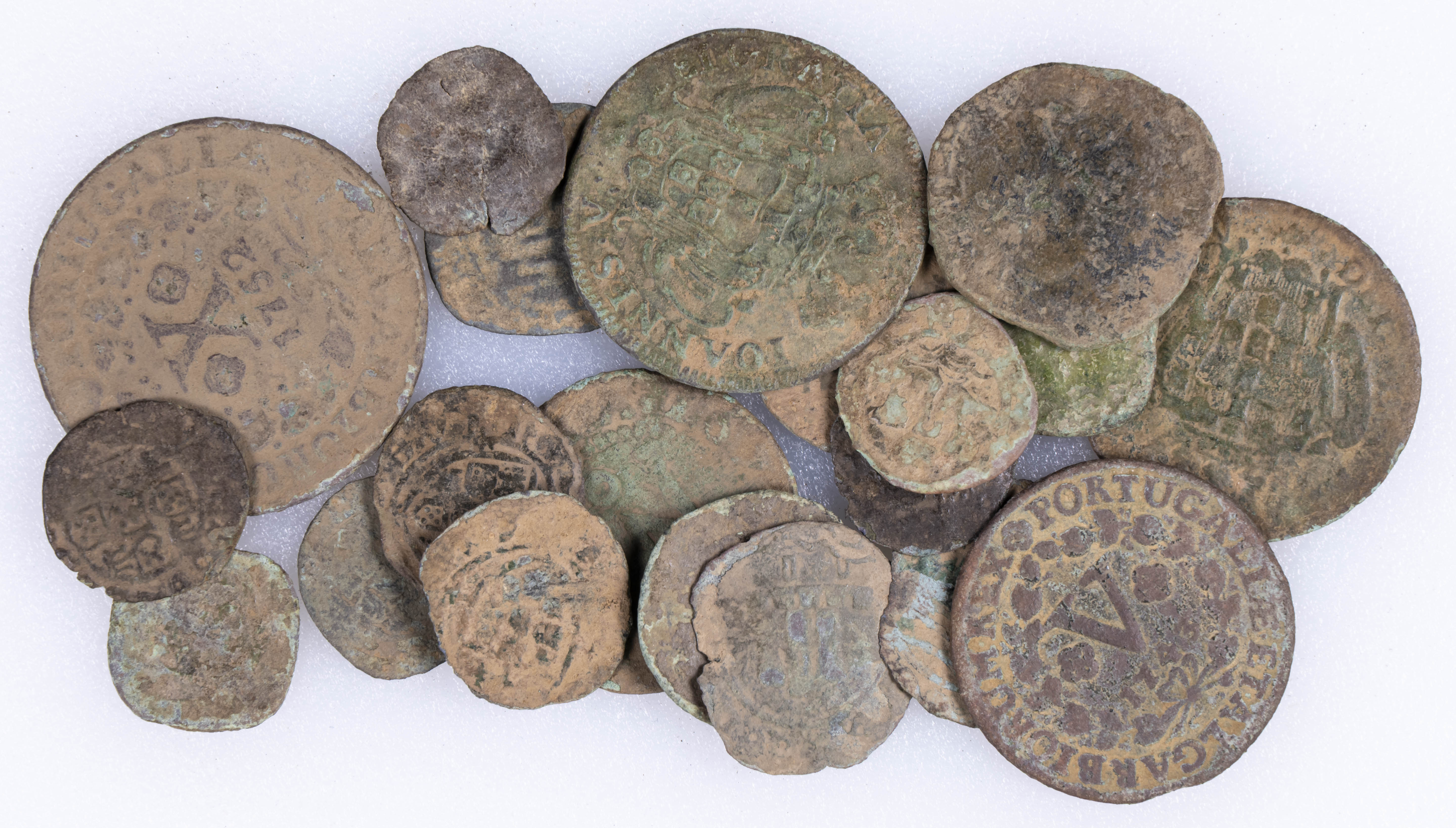 PORTUGAL. An interesting collection of 21 varied copper pieces spanning a broad period, from the reigns of King Duarte I to King John V. Different types, sizes, and states of preservation. TO BE EXAMINED.
