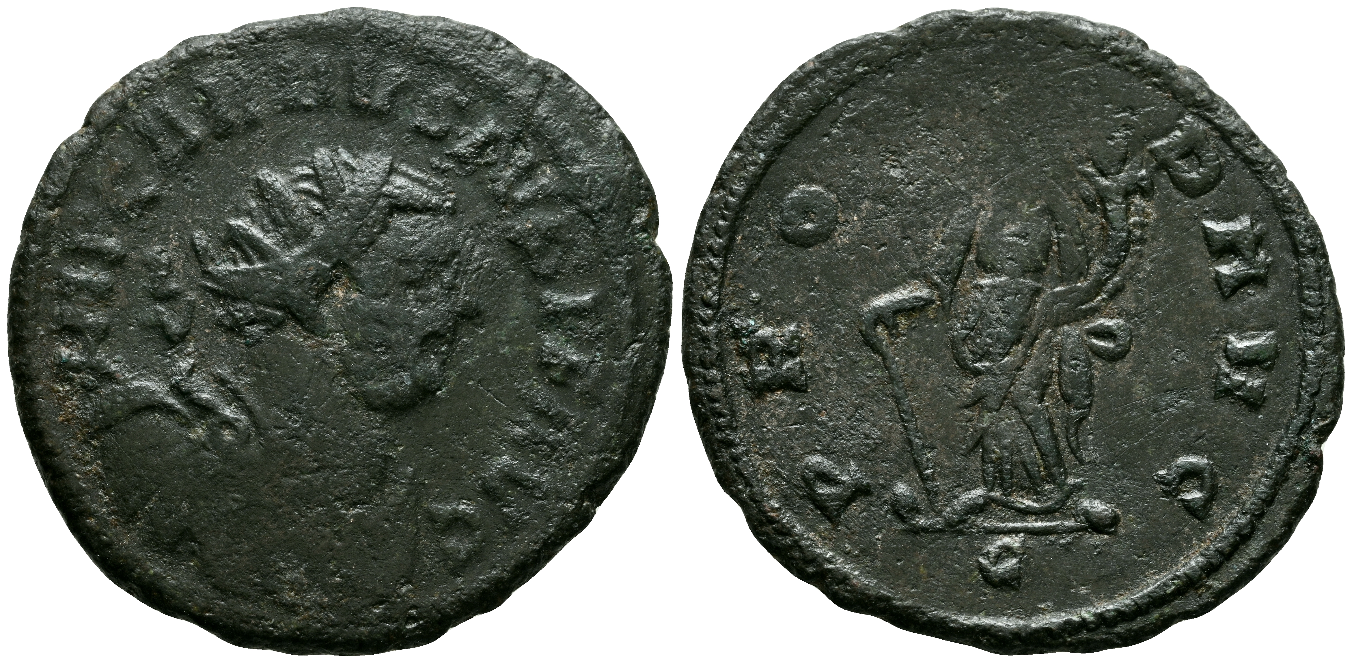 English CARAUSIUS. Antoninianus. (Ae. 4.59g /24mm). 286-293 AD Camulodunum. (RIC 347). Obv: Radiant, draped, and cuirassed bust of Carausius facing right, around legend: IMP C CARAVSIVS AVG. Rev: Providentia standing left with scepter and cornucopia, between SP, around legend: PROVID AVG, in exergue: C. Very Fine. Scarce example.