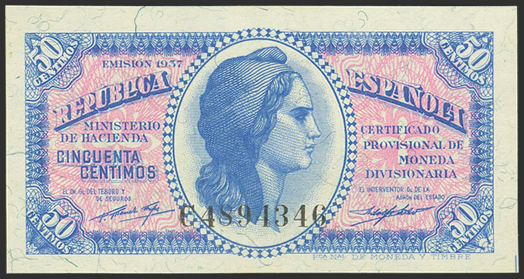 50 Centimos. 1937. Series C, last series issued. (Edifil 2023: 391a). Original finish. UNC.