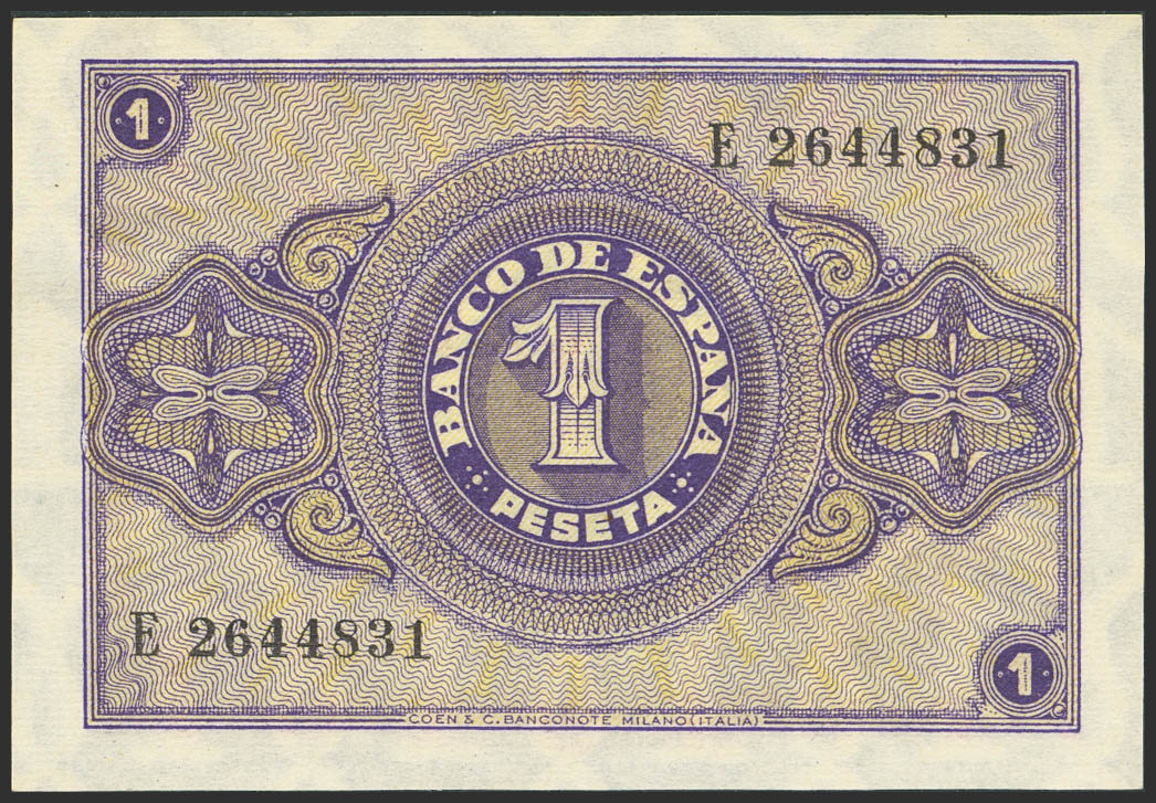 English 1 Peseta. October 12, 1937. Series E. (Edifil 2023: 425a). Original condition. Uncirculated.