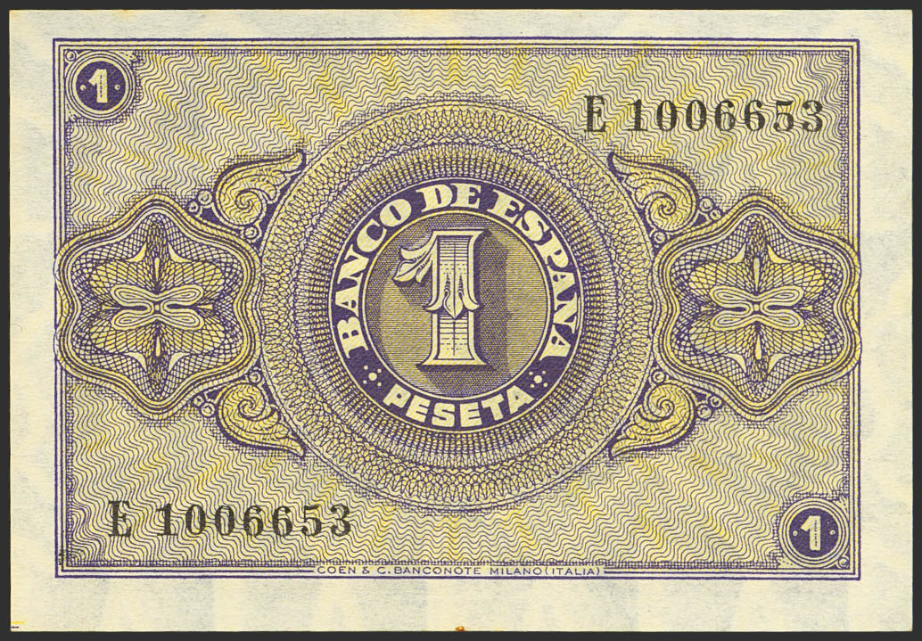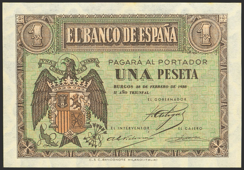 English 1 Peseta. February 28, 1938. Series E. (Edifil 2023: 427a). Original finish. Uncirculated.