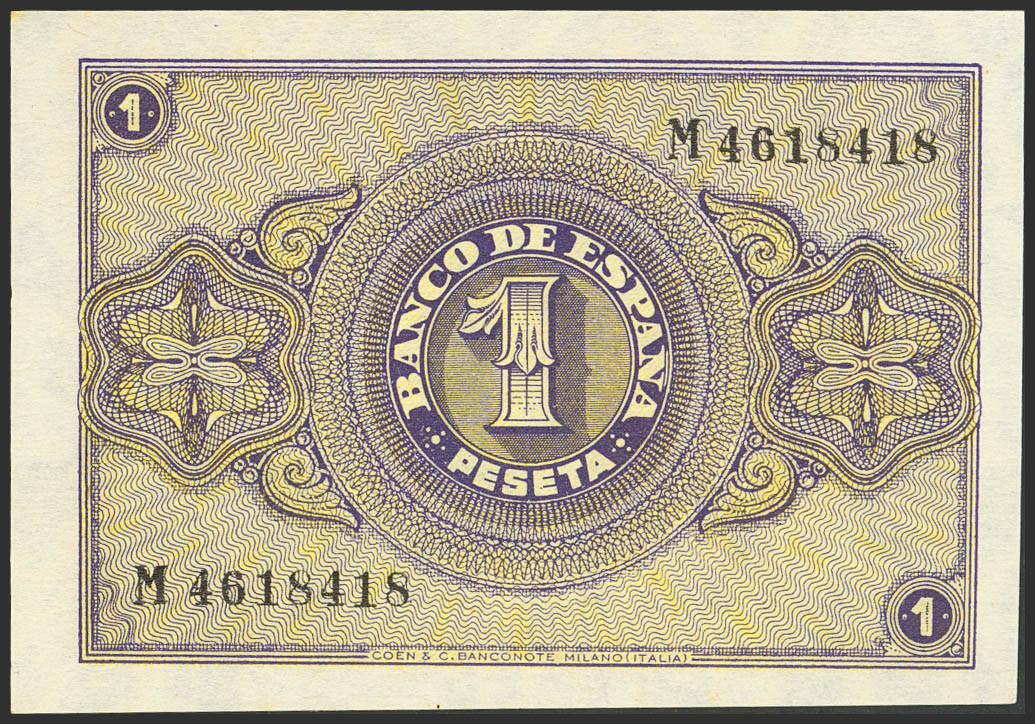 English 1 Peseta. April 30, 1938. Series M. (Edifil 2023: 428a). Original finish. Uncirculated.