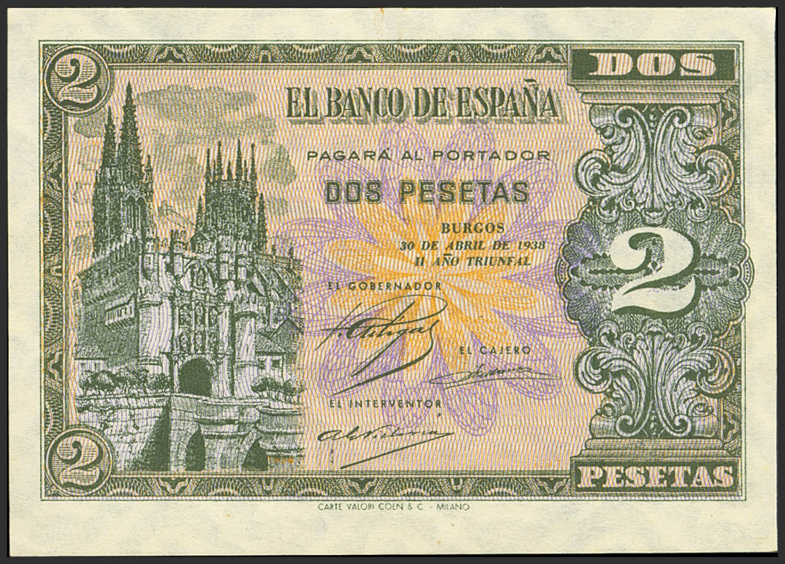 2 Pesetas. April 30, 1938. Series D. (Edifil 2023: 429a). Original finish. Uncirculated.