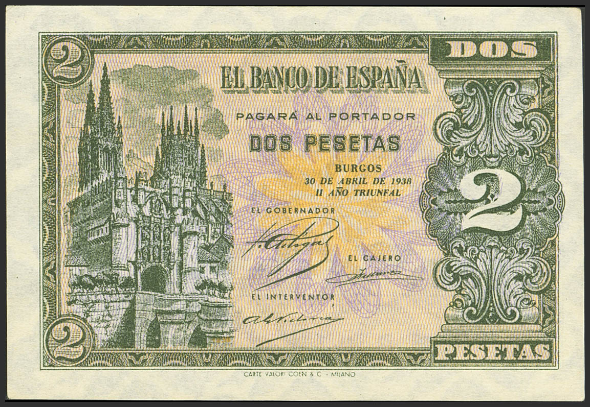 2 Pesetas. April 30, 1938. Series L. (Edifil 2023: 429a). Original finish. Uncirculated.