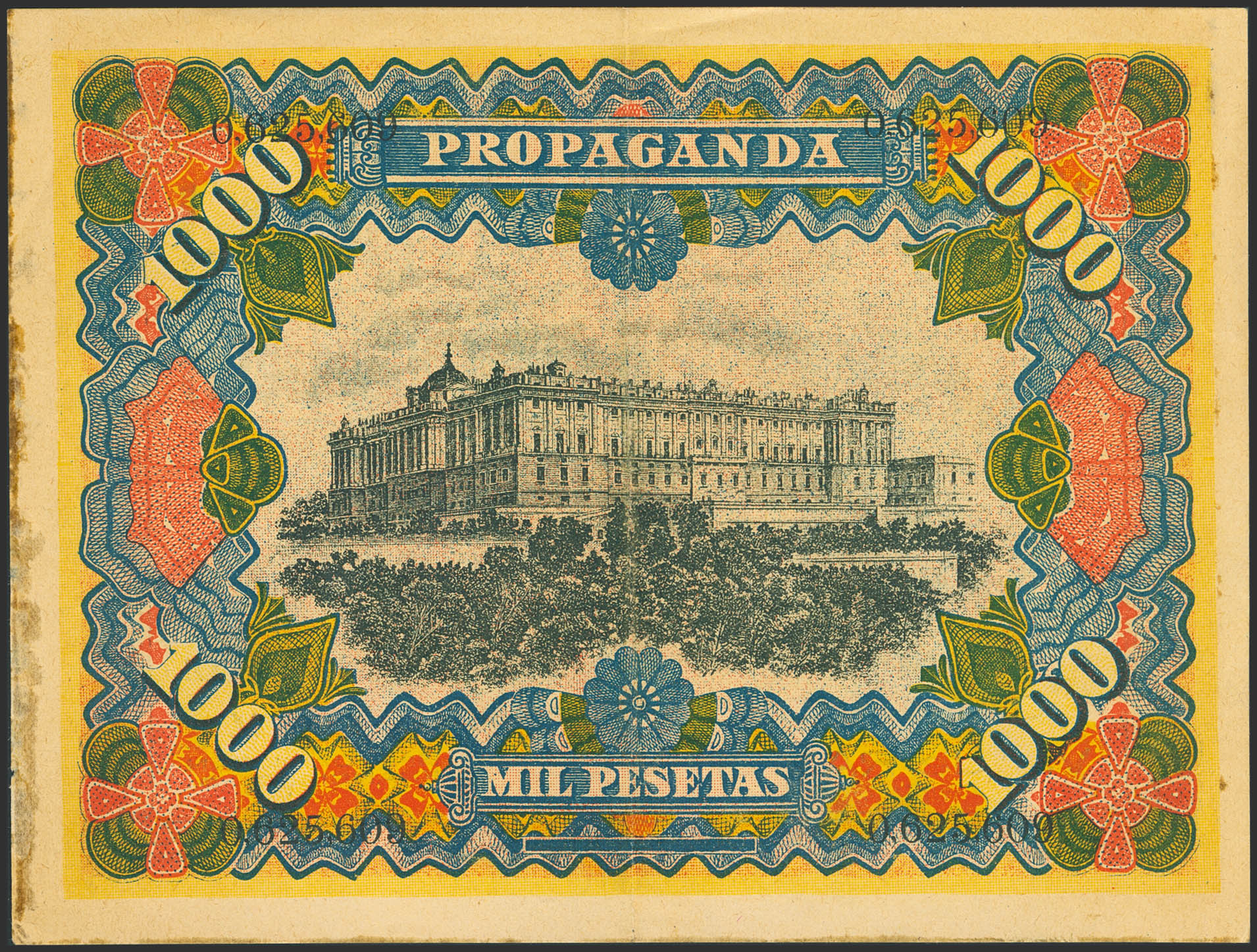 1000 Pesetas. 1907. Advertising banknote from a tableware shop, numbered, located at Bajada de San Francisco, 9 (Madrid). Rare advertising banknote. Extremely Fine.