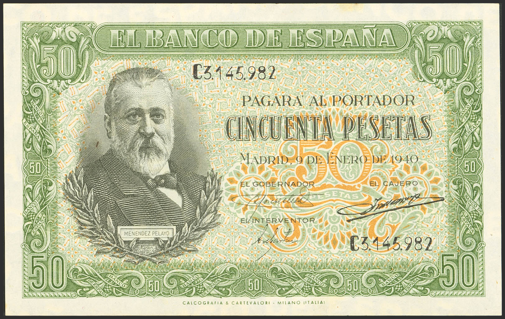 English 50 Pesetas. January 9, 1940. Series C. (Edifil 2023: 437a). Original finish. Uncirculated-.