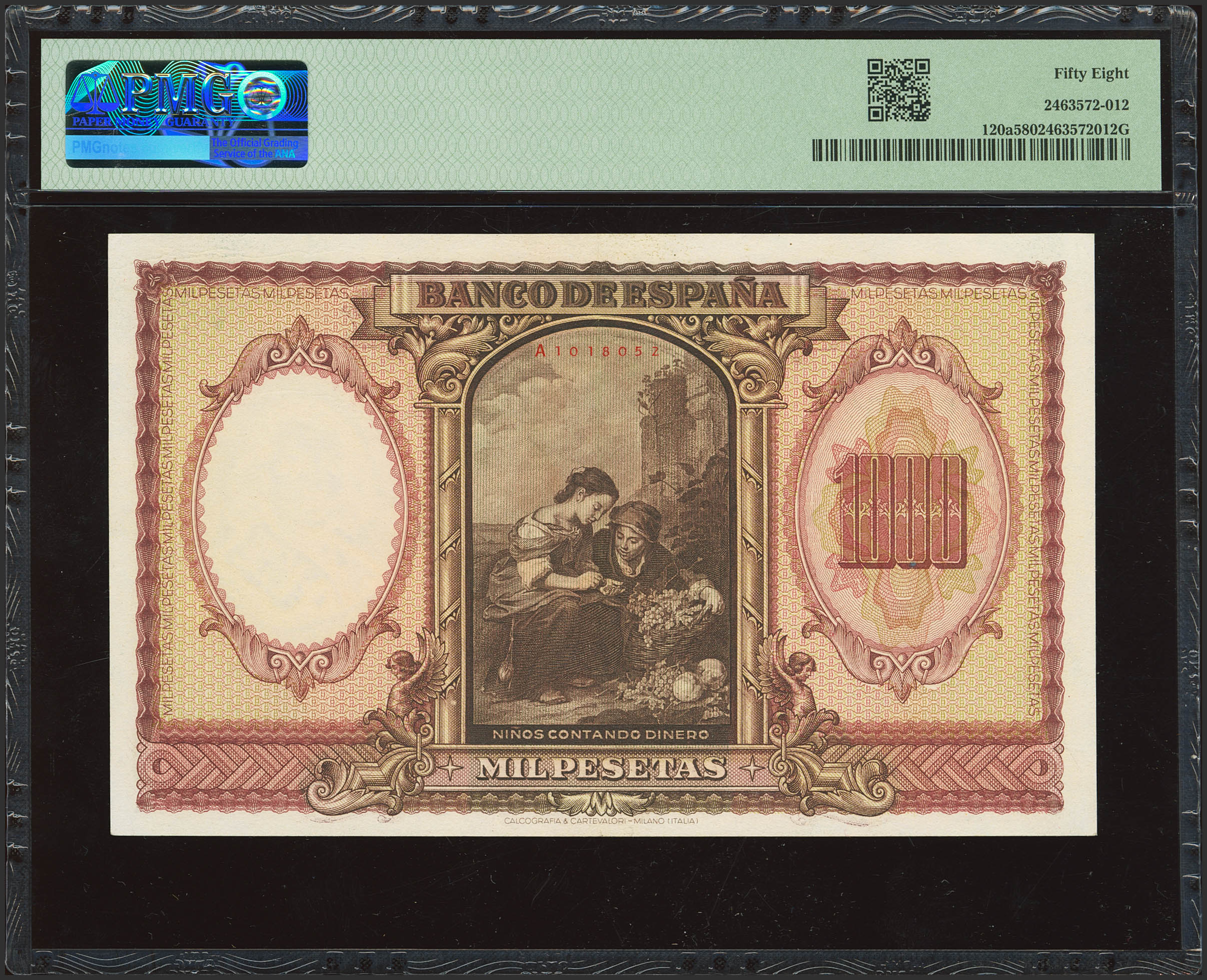 1000 Pesetas. January 9, 1940. Series A. (Edifil 2023: 440, Pick: 120a). Good Extremely Fine+. PMG58 package.