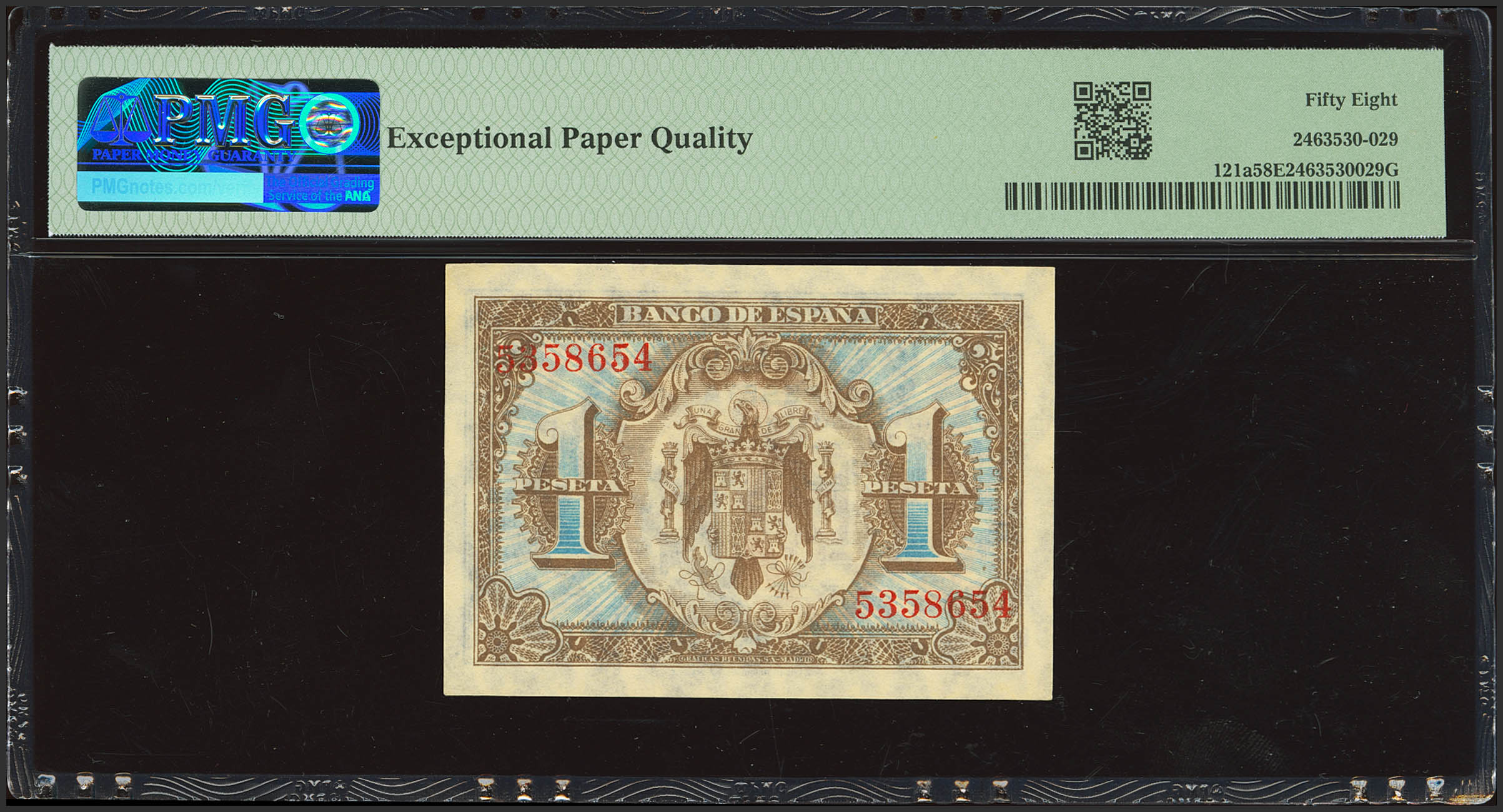 1 Peseta. June 1, 1940. No serial number. (Edifil 2023: 441, Pick: 121a). Original condition. EF+++. PMG58EPQ.