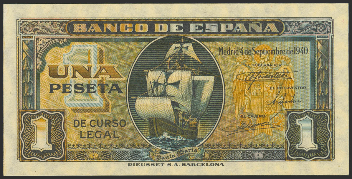 English 1 Peseta. September 4, 1940. Series A. (Edifil 2023: 442a). Original condition. Uncirculated.