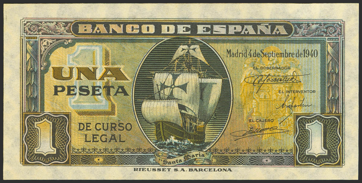 English 1 Peseta. September 4, 1940. Series D. (Edifil 2023: 442a). Original finish. Uncirculated.