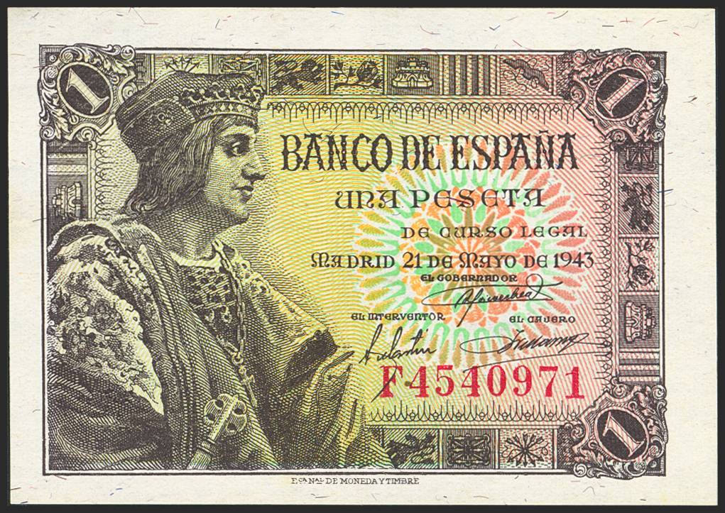 1 Peseta. June 21, 1943. Series F. (Edifil 2023: 447a). Original condition. Uncirculated.