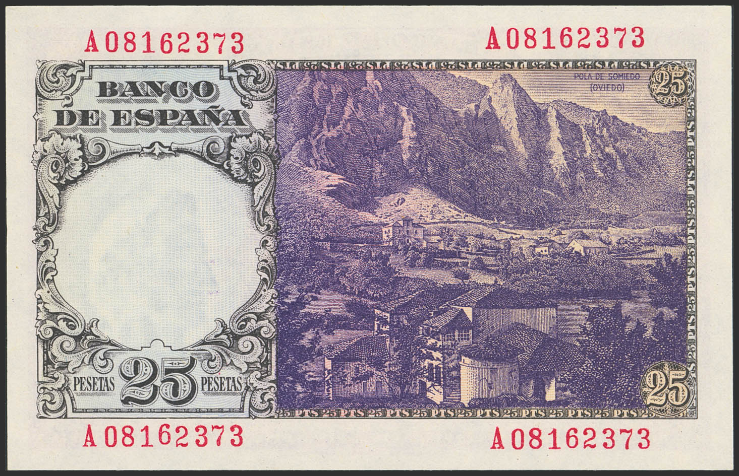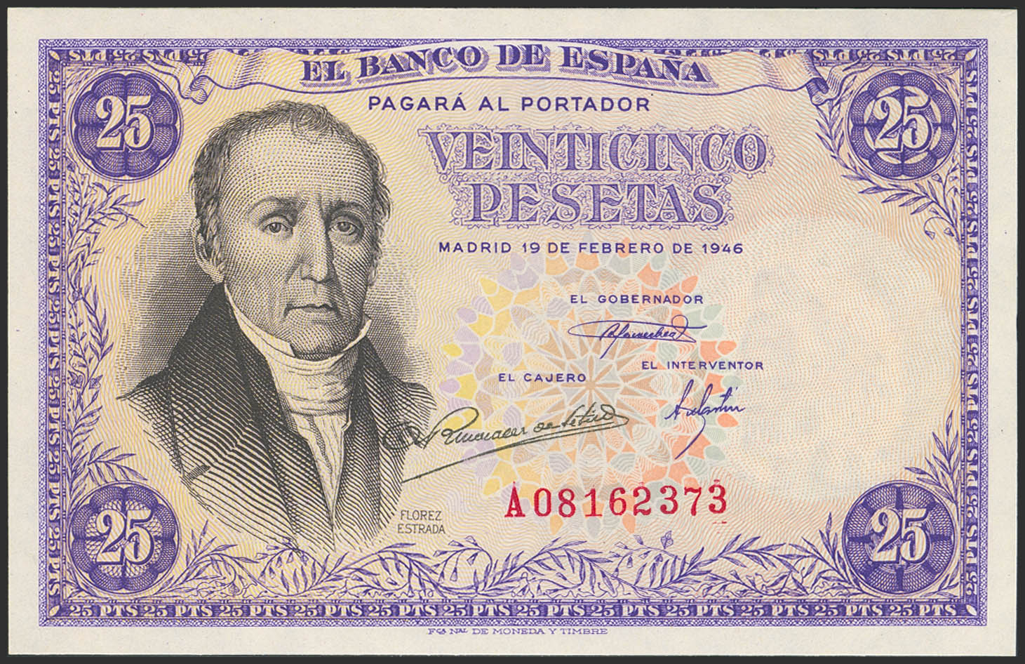 25 Pesetas. February 19, 1946. Series A. (Edifil 2023: 450a). Original condition. Uncirculated.