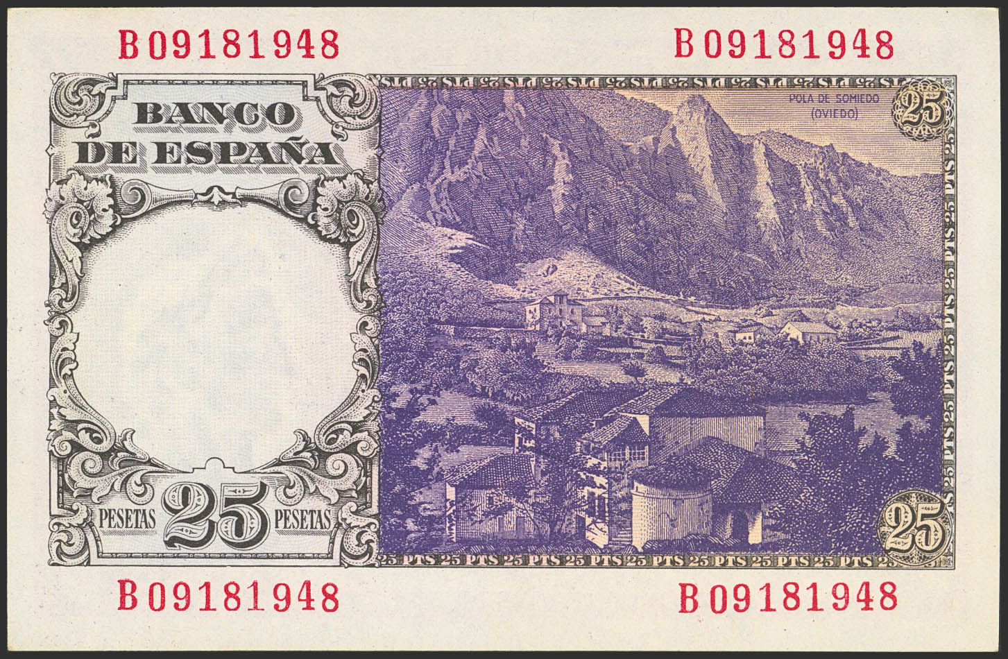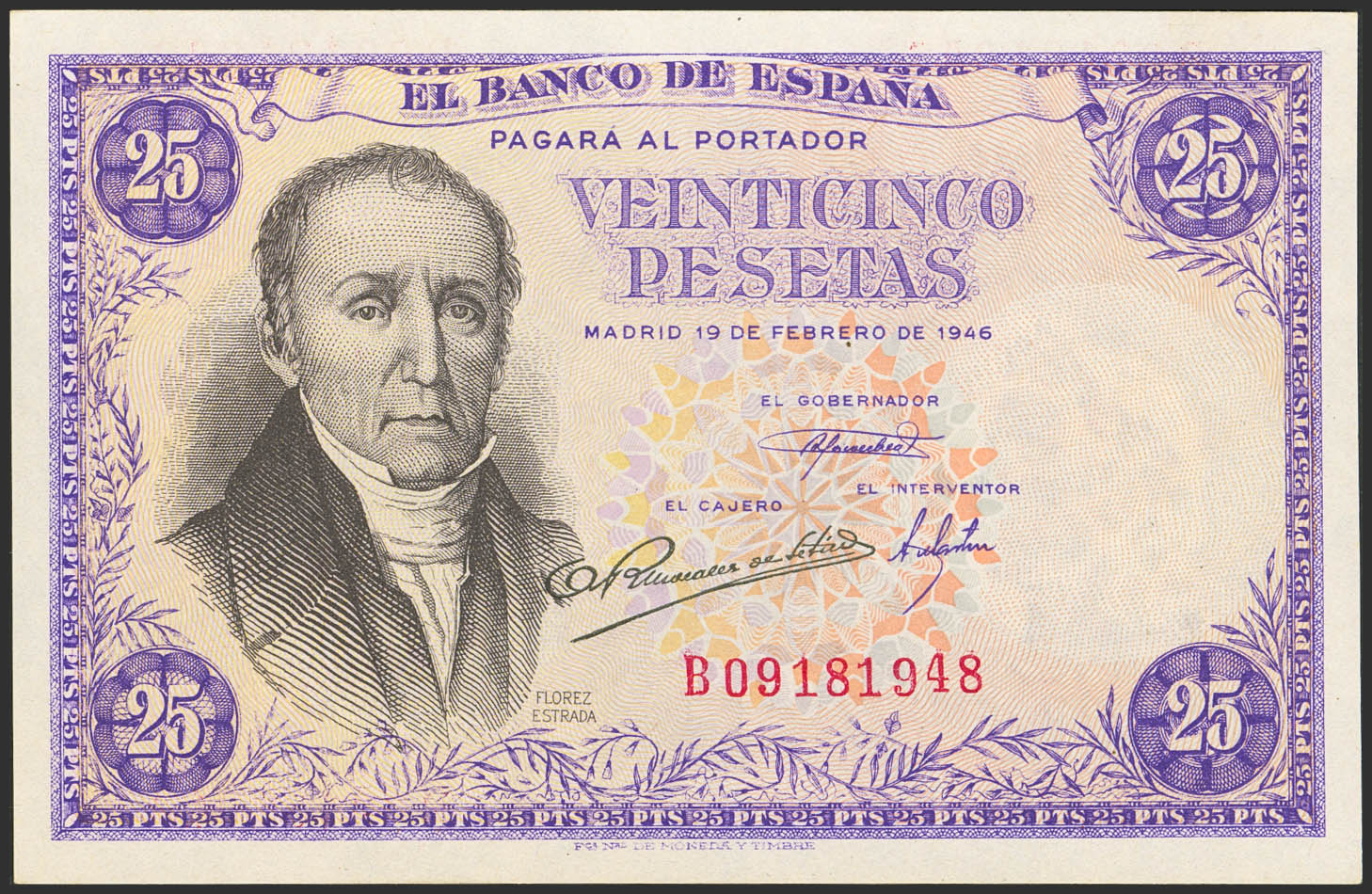25 Pesetas. February 19, 1946. Series B. (Edifil 2023: 450a). Original finish. Uncirculated-.