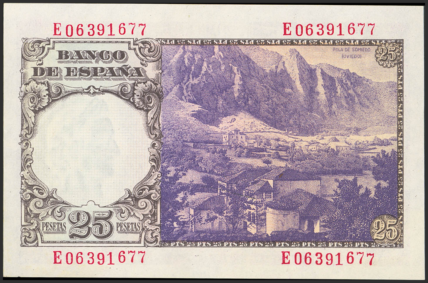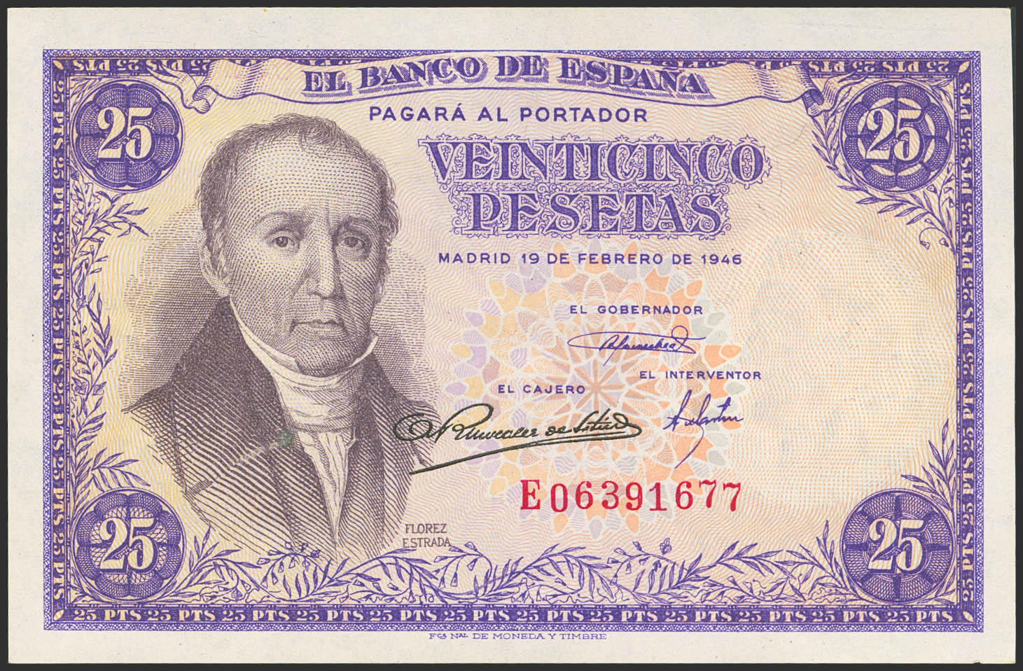 25 Pesetas. February 19, 1946. Series E. (Edifil 2023: 450a). Original finish. Uncirculated-.