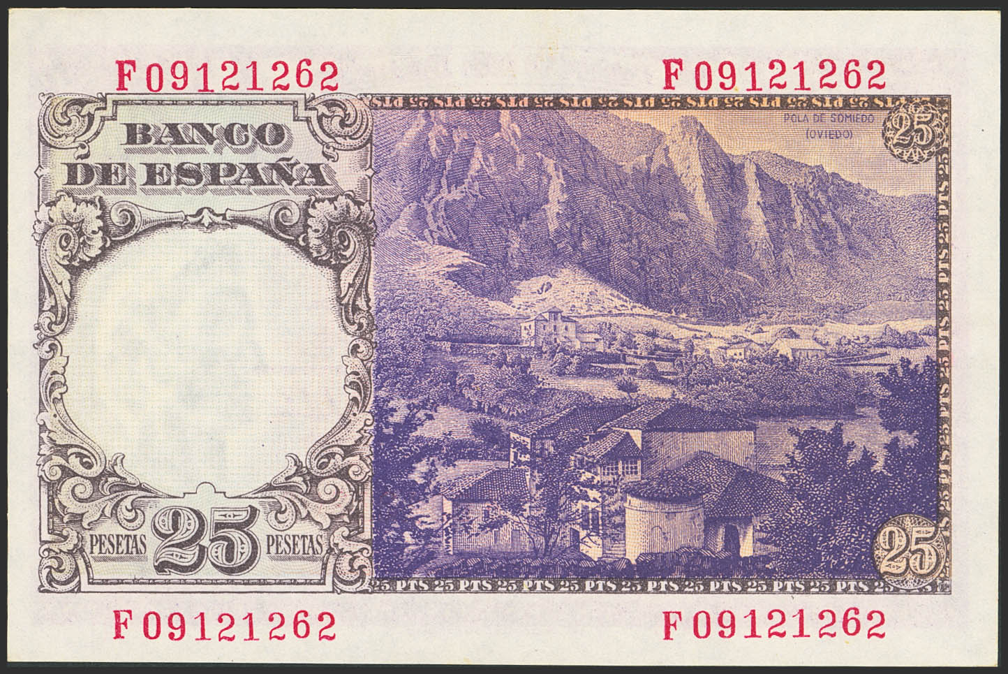 25 Pesetas. February 19, 1946. Series F. (Edifil 2023: 450a). Original finish. Uncirculated-.
