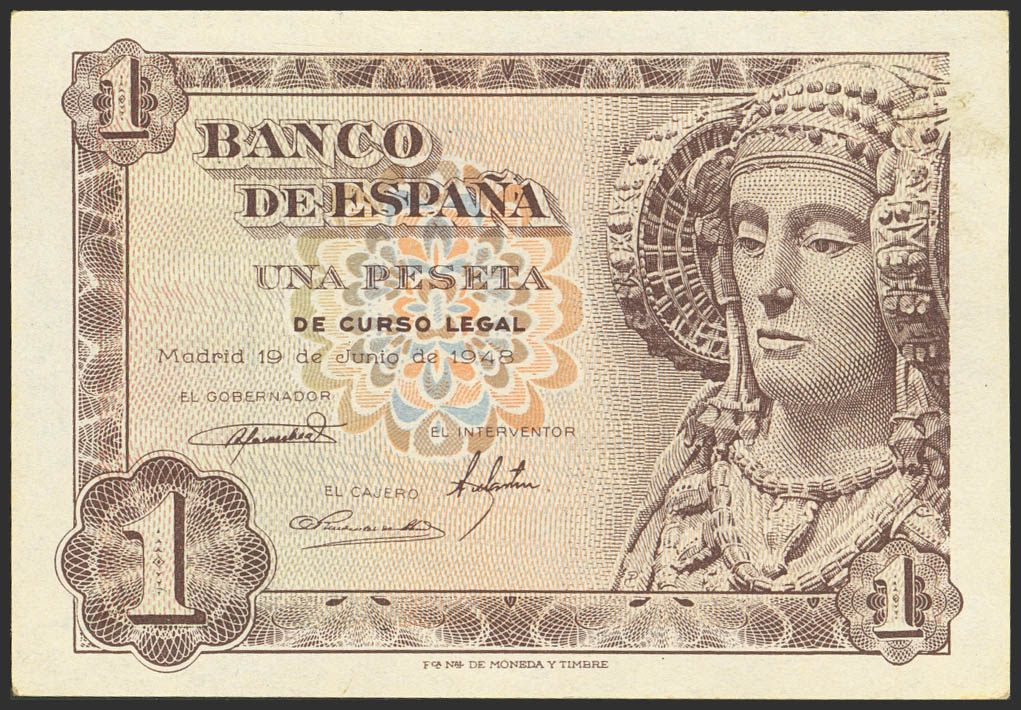 1 Peseta. June 19, 1948. Series O, last series issued. (Edifil 2023: 457b). Original condition. Uncirculated-.
