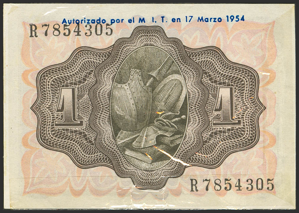 English 1 Peseta. November 19, 1951. Series R and with advertising for "La Lechera Condensed Milk", the banknote is presented inside a cellophane bag where the advertisement is printed. (Edifil 2023: 461a). It retains much of its original finish. Uncirculated--.