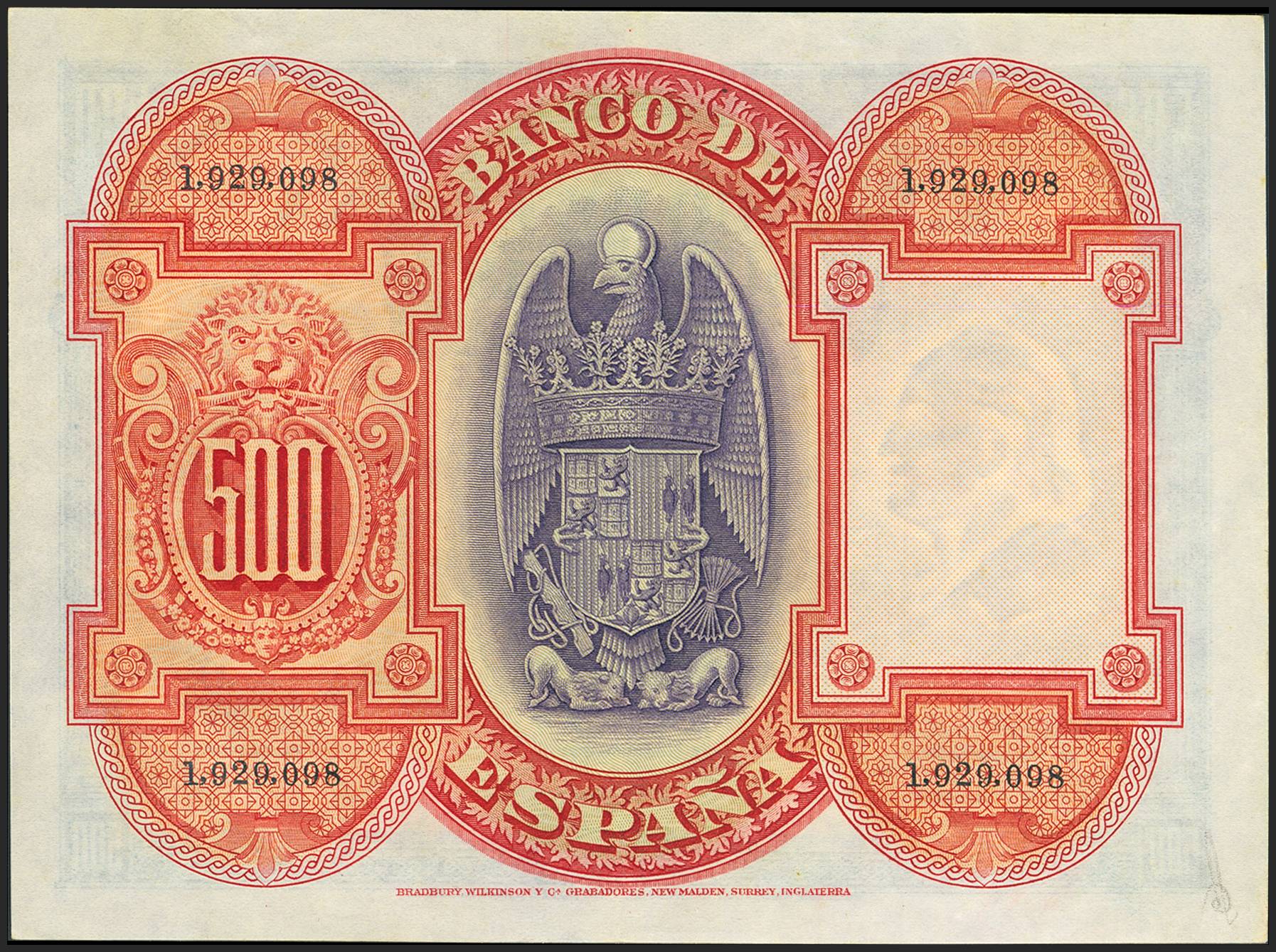500 Pesetas. July 24, 1927. No series, serial number after 1602000. (Edifil 2023: 352). Original finish. EF+.