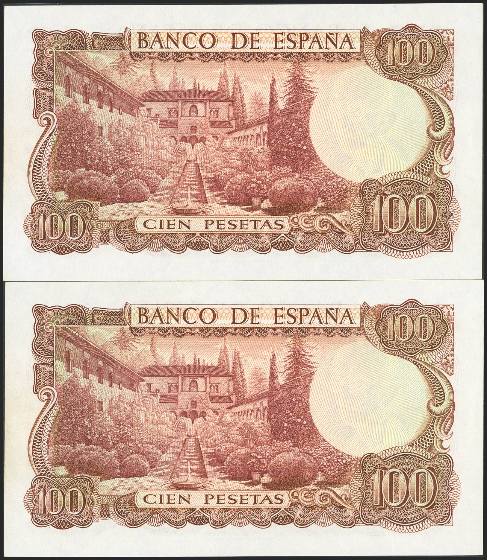 100 Pesetas. November 17, 1970. Consecutive pair. Series 1E. (Edifil 2023: 472b). Original finish. Uncirculated.
