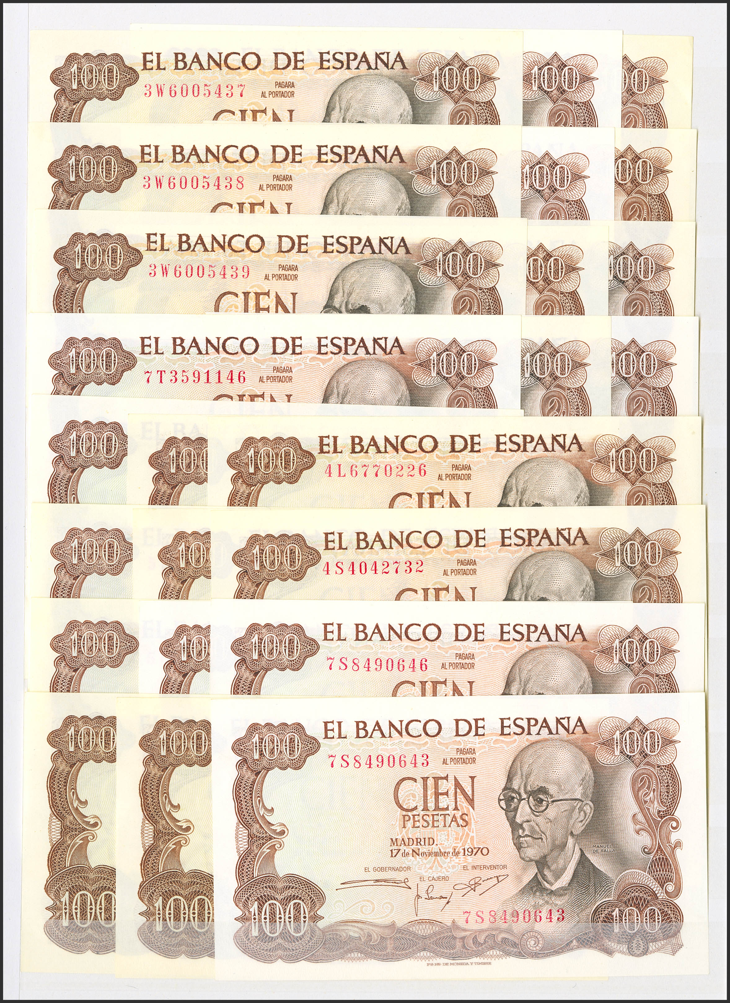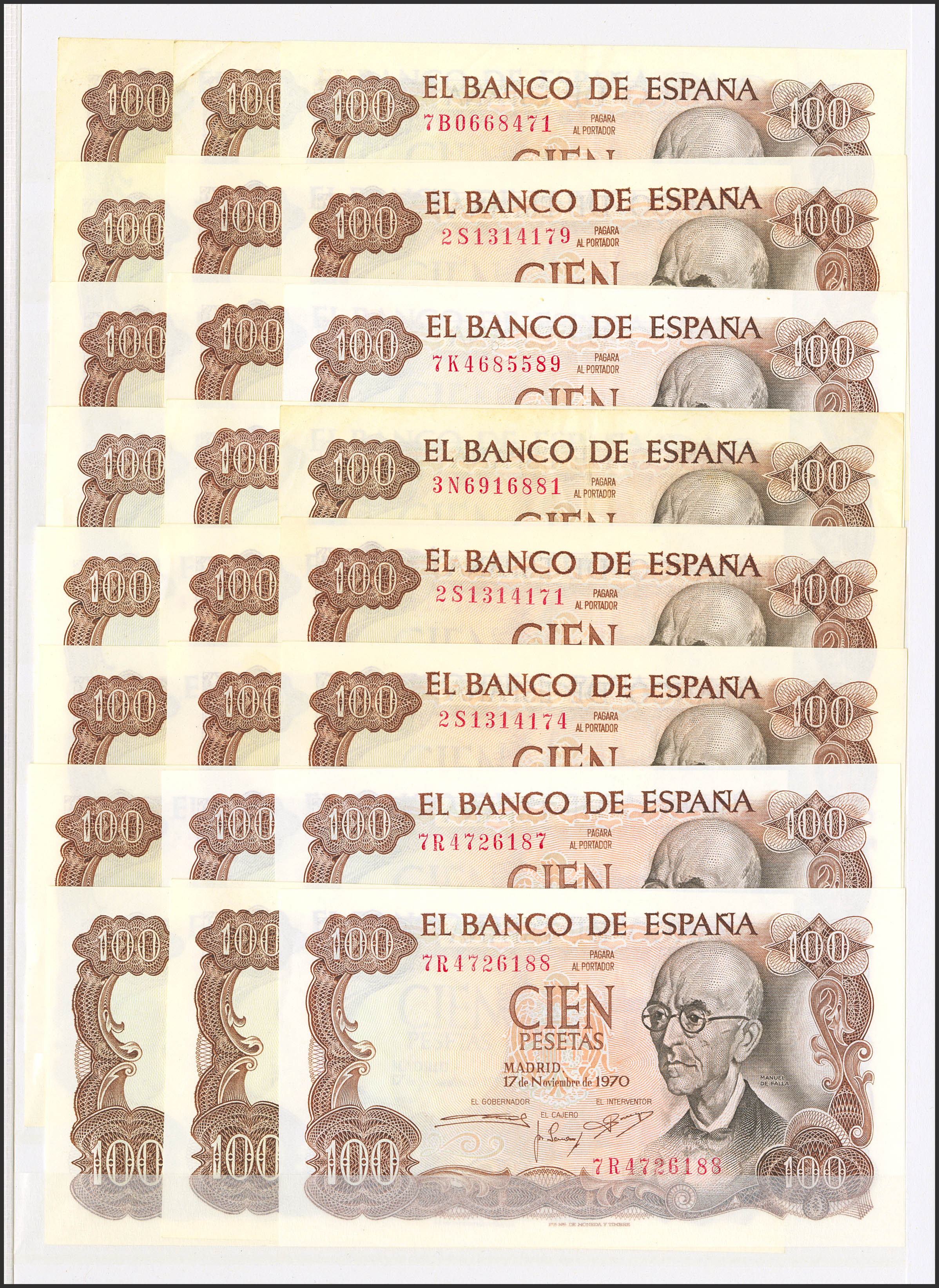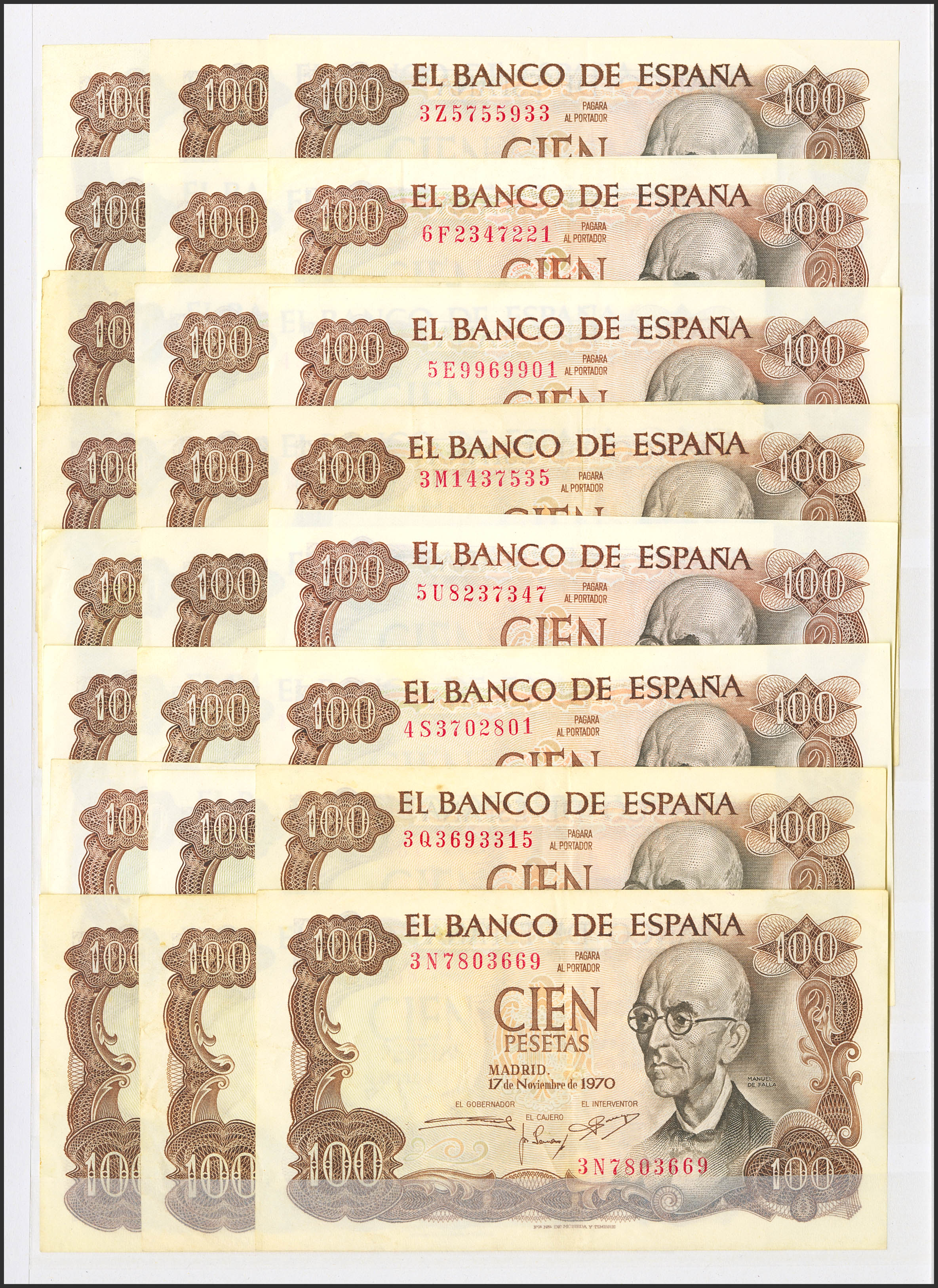 Collection of more than 160 100 Pesetas banknotes issued on November 17, 1970, various series. (Edifil 2023: 472b). TO BE EXAMINED.