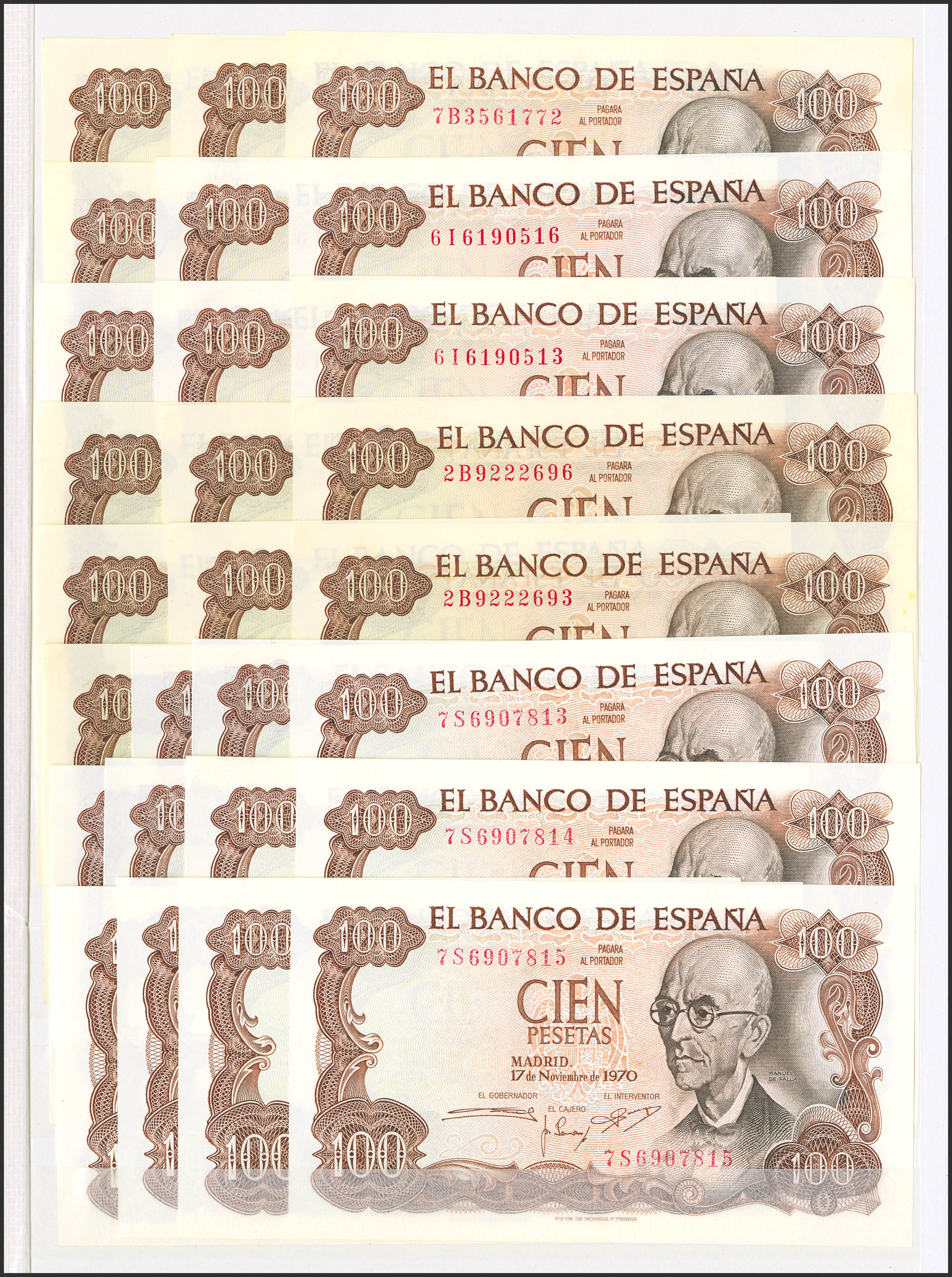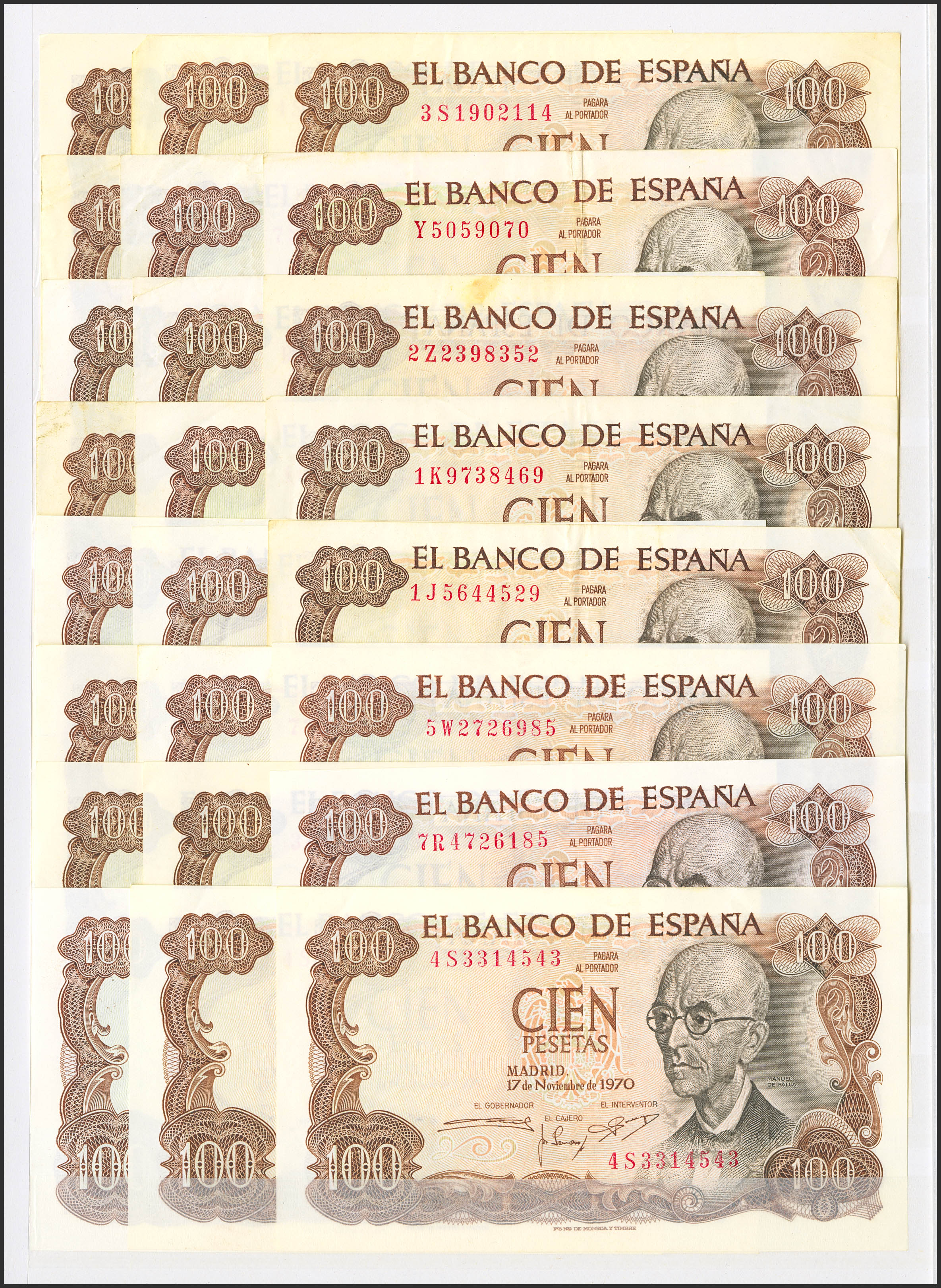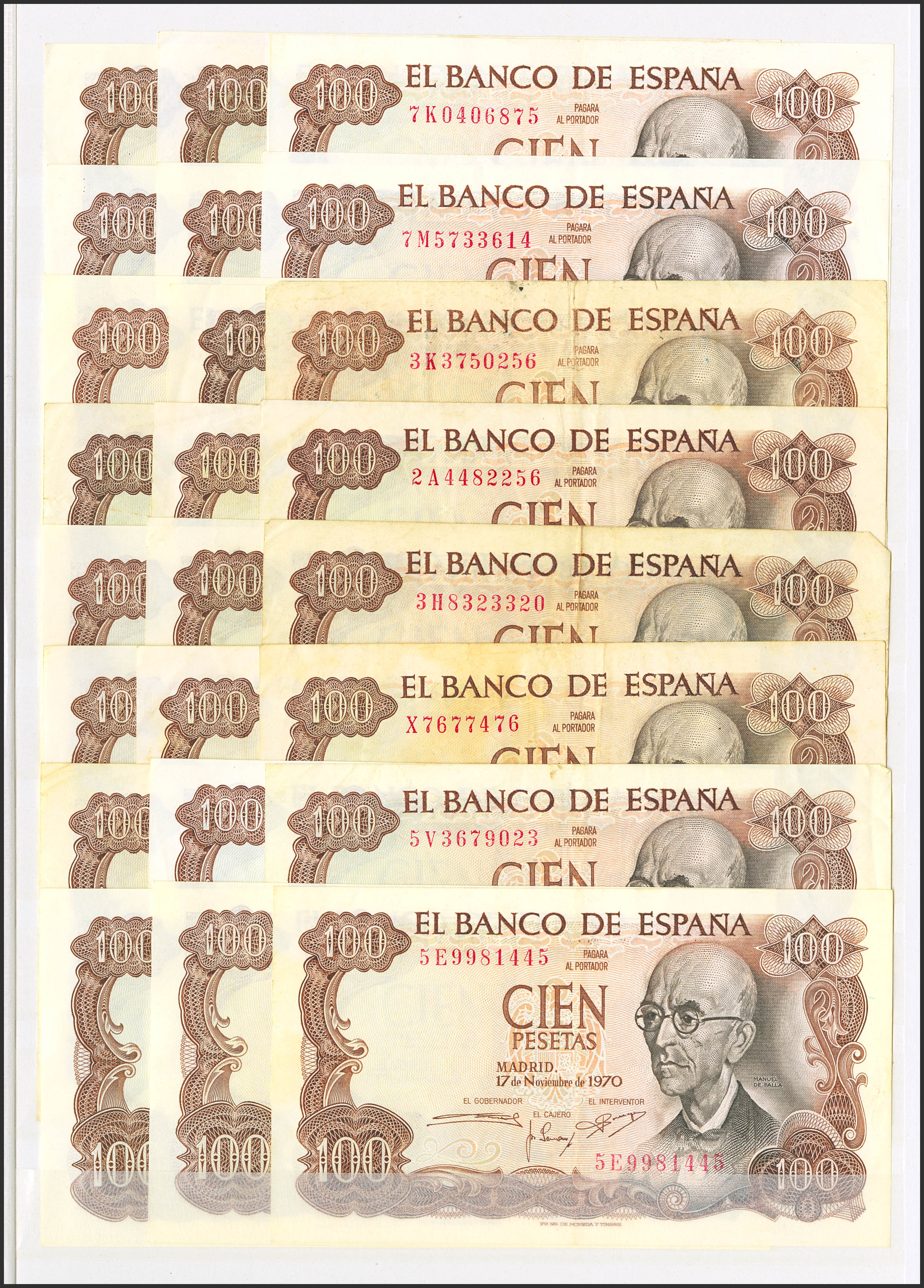 Collection of more than 160 100 Pesetas banknotes issued on November 17, 1970, various series. (Edifil 2023: 472b). TO BE EXAMINED.