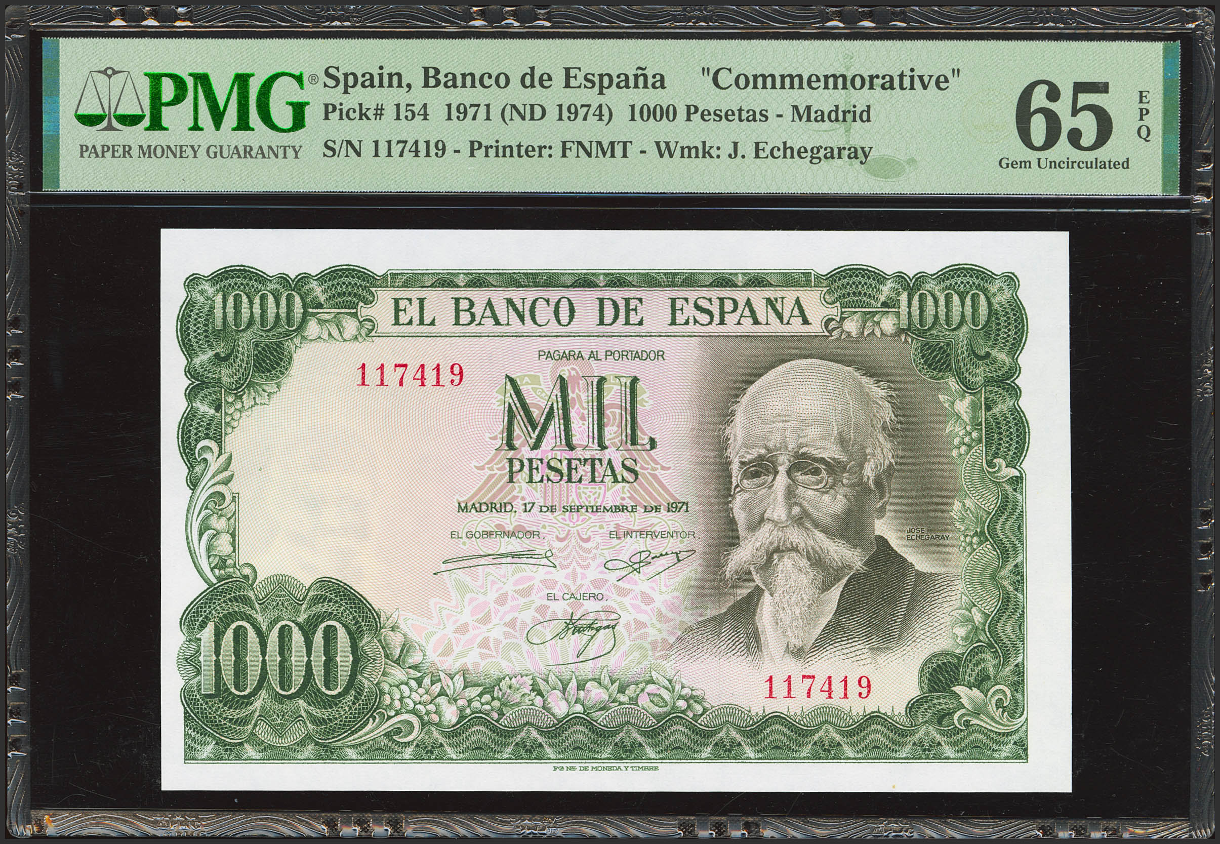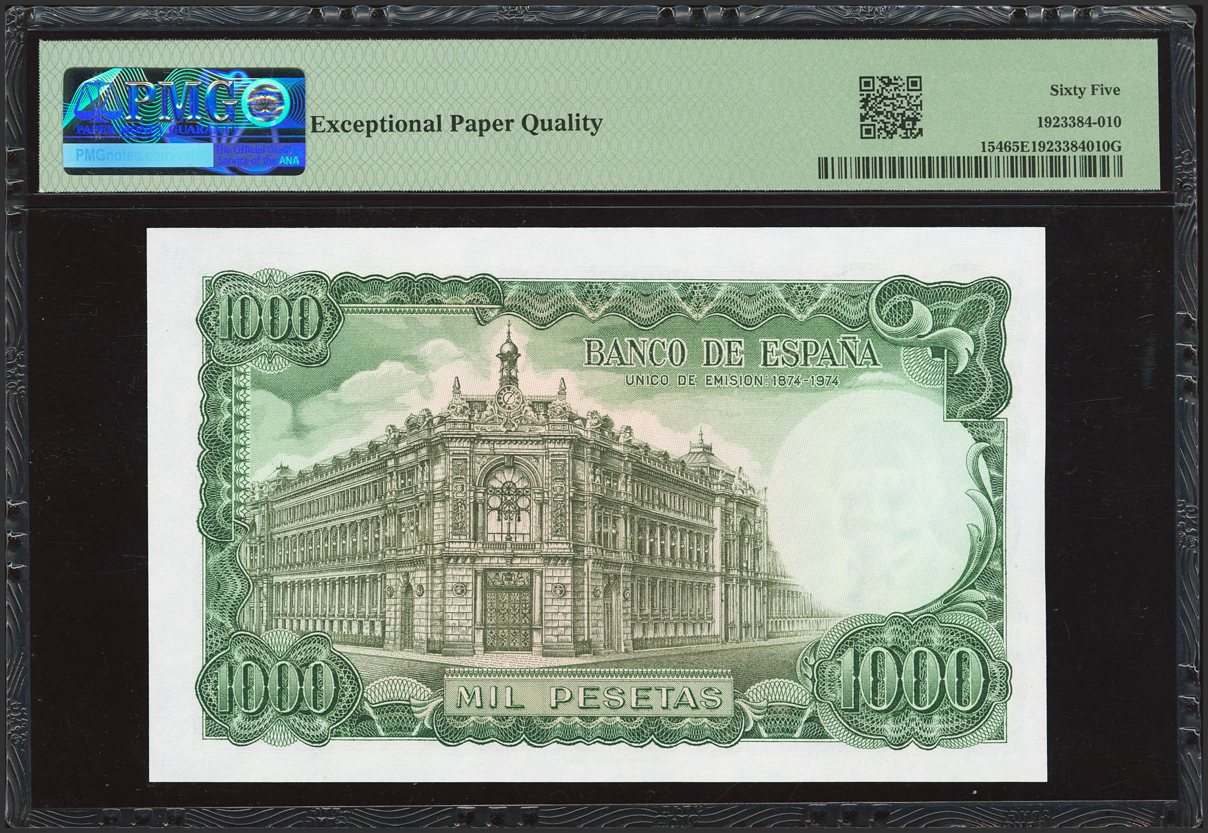 English 1000 Pesetas. September 17, 1971. No serial number. (Edifil 2023: 474, Pick: 154). Uncirculated. PMG65EPQ package.