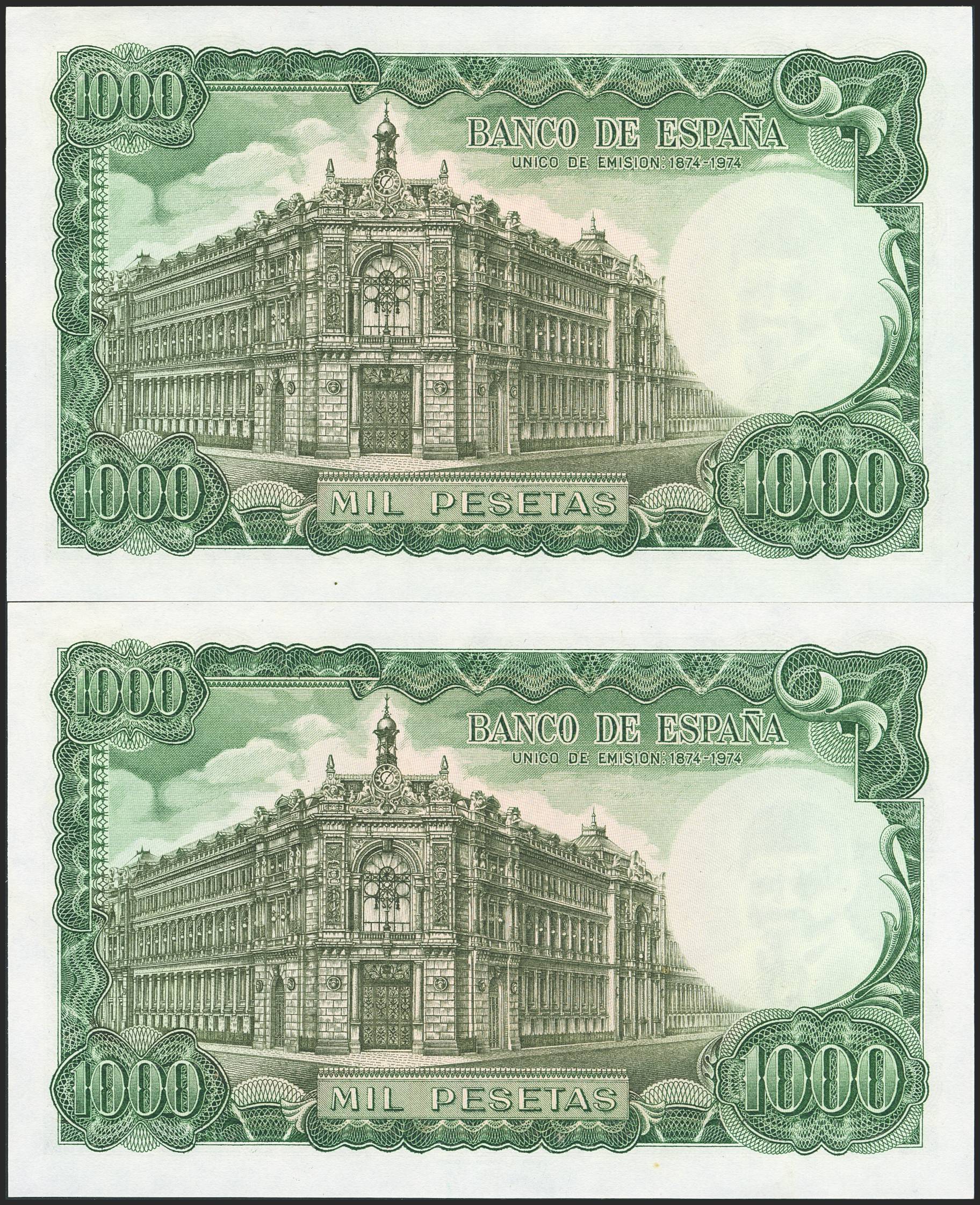 1000 Pesetas. September 17, 1971. Consecutive pair. No series. (Edifil 2023: 474). Original finish. Uncirculated.