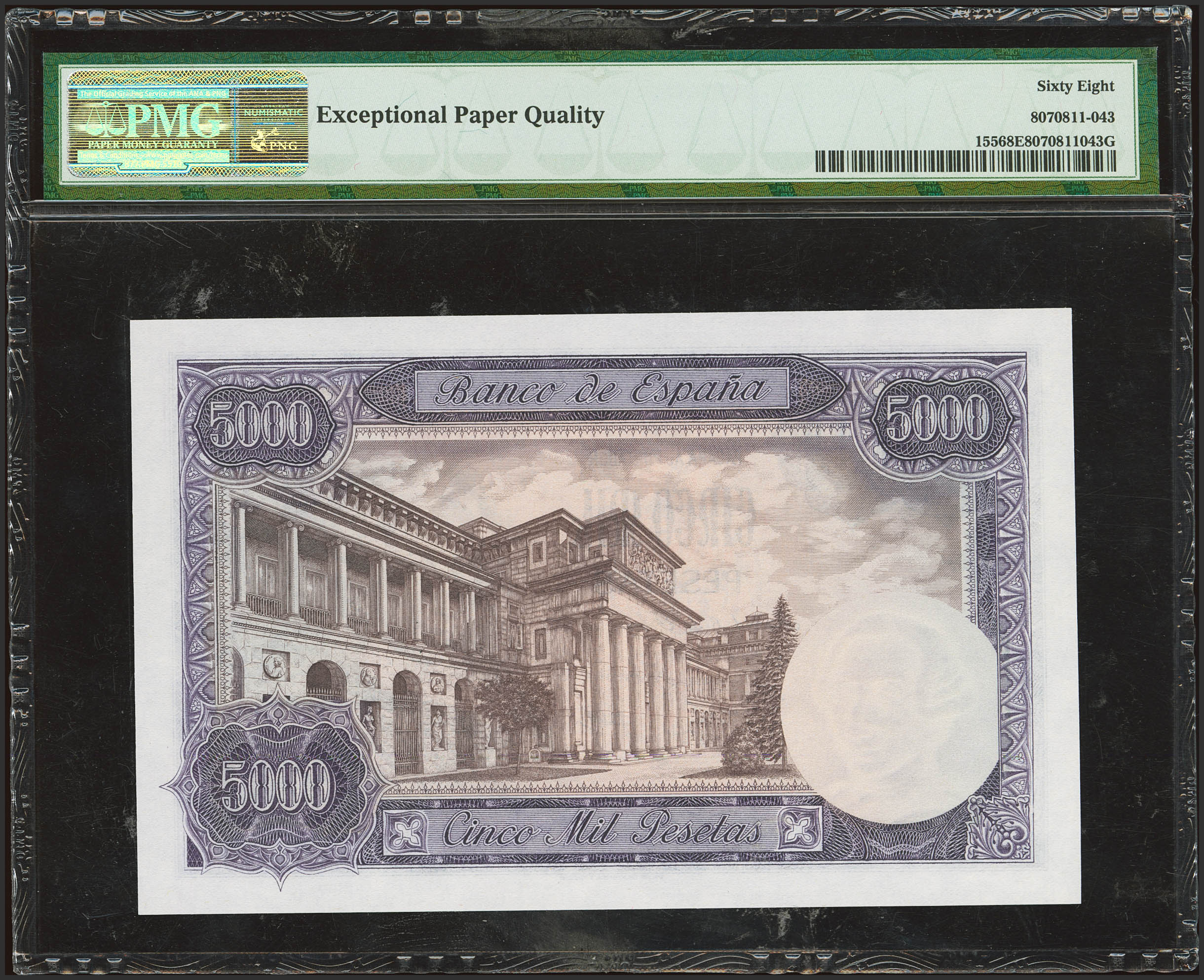 5000 Pesetas. February 6, 1976. No serial number. (Edifil 2023: 475, Pick: 155). Uncirculated. PMG68EPQ package.
