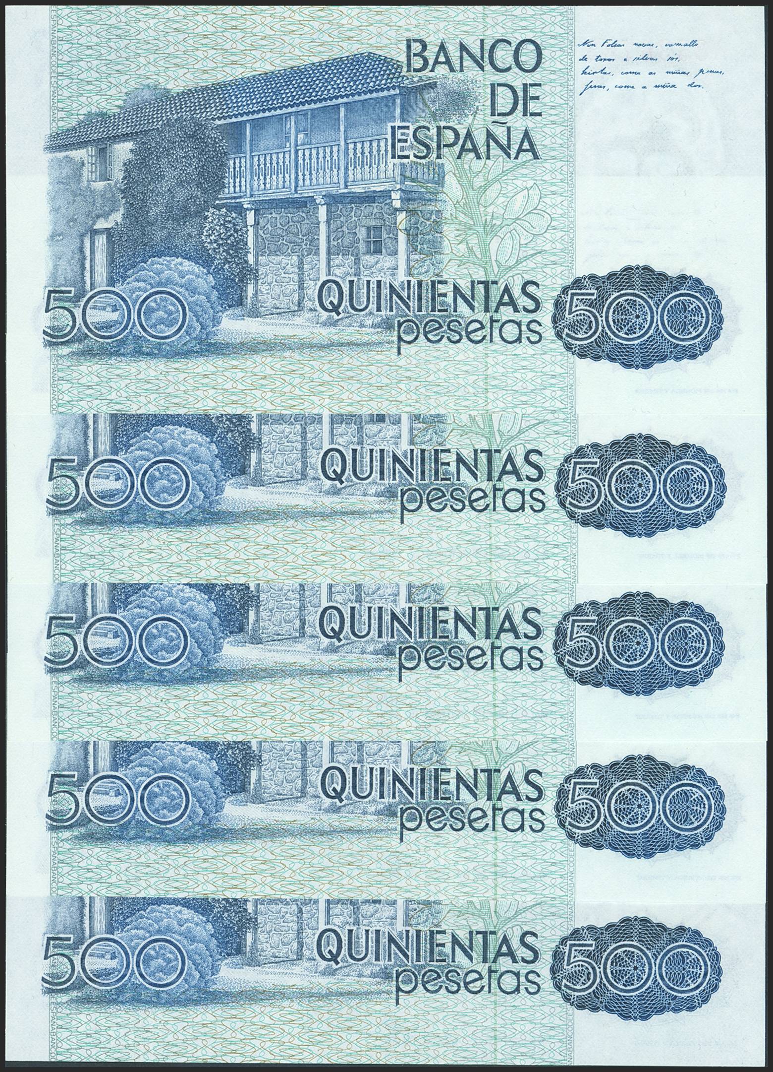 Set of 5 consecutive banknotes, issued on October 23, 1979, all without a series number. (Edifil 2023: 476). Uncirculated/Uncirculated-.