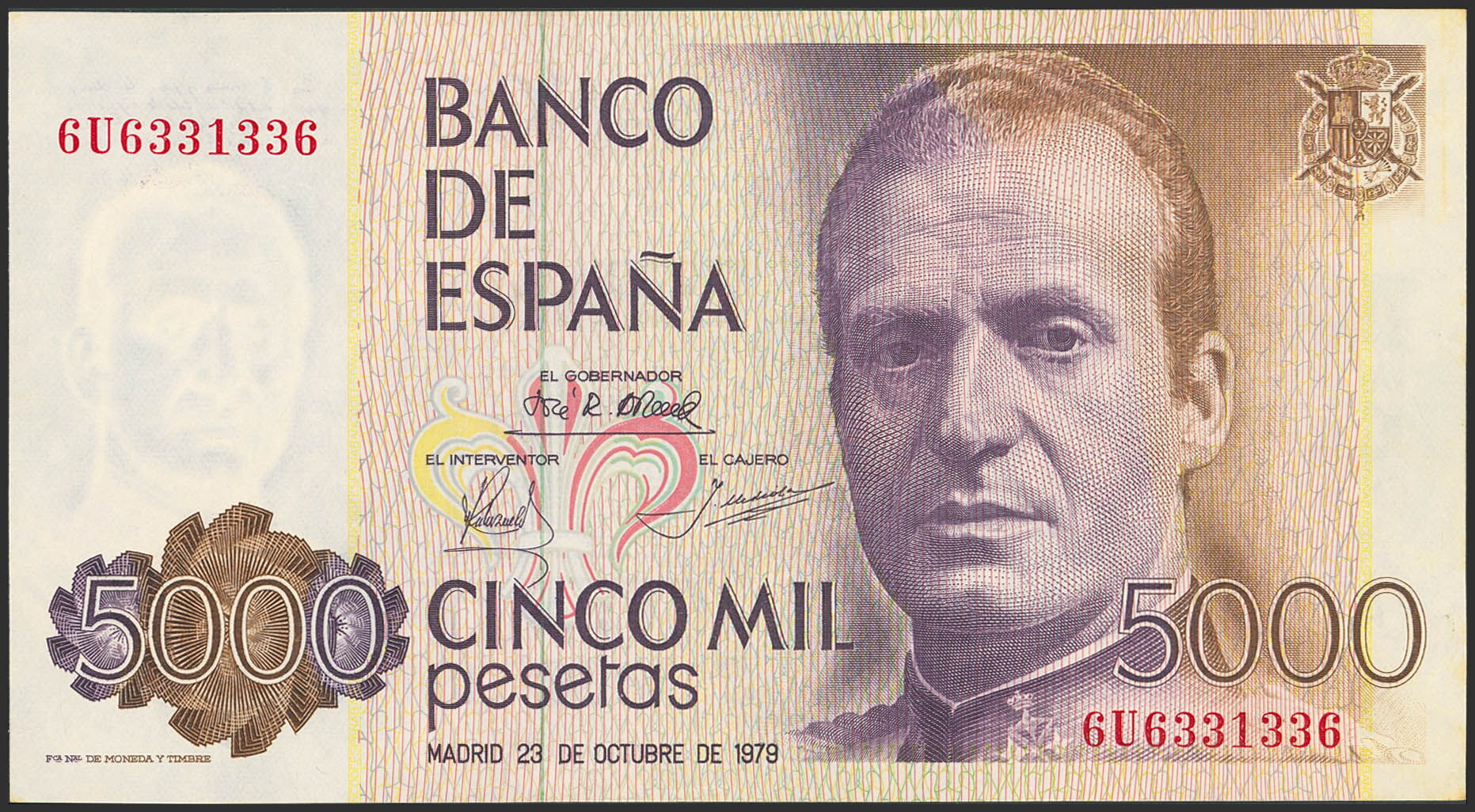 5000 Pesetas. October 23, 1979. Series 6U and palindromic numbering. (Edifil 2023: 478a). Uncirculated-.