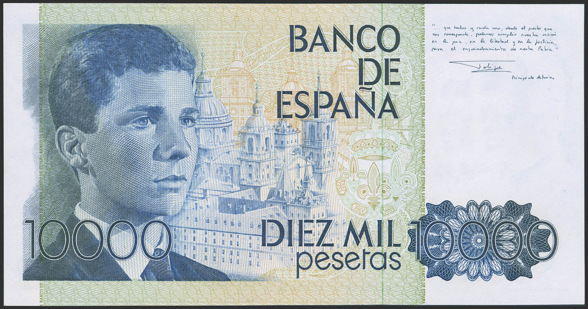 English 10,000 Pesetas. September 24, 1985. No series and very low serial number. (Edifil 2023: 481). Uncirculated--