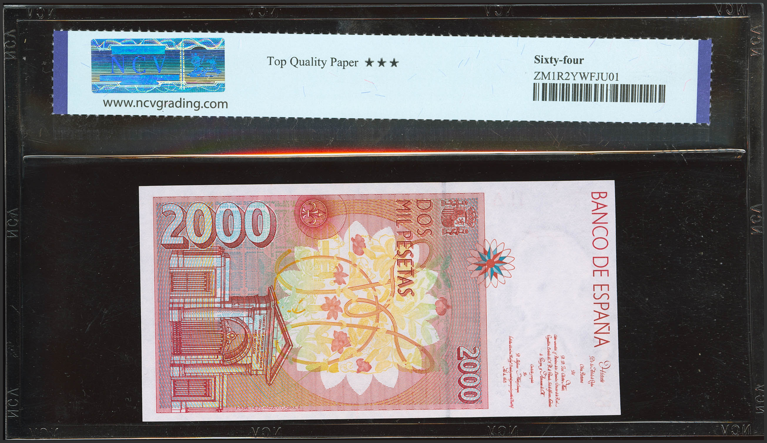 English 2000 Pesetas. April 24, 1992. Special Series 9B. (Edifil 2023: 482Ab, Pick: 164*). Uncirculated. NCV64TPQ package.