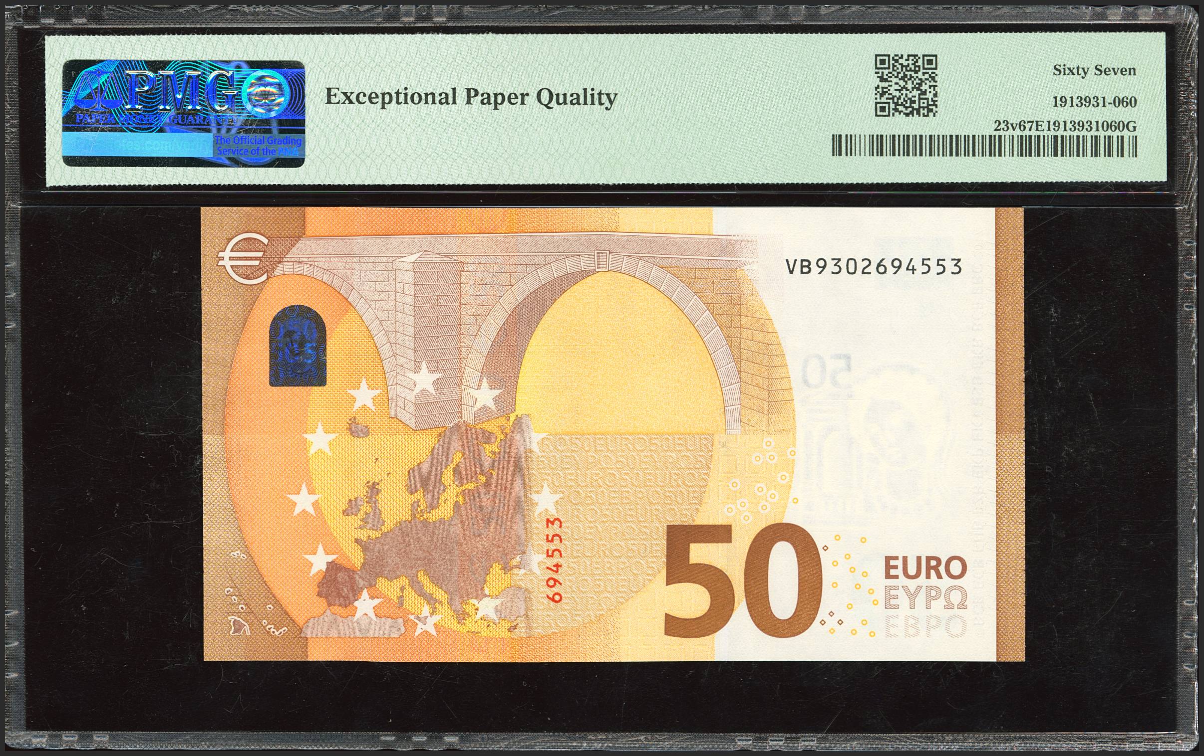 English 50 Euros. 2017. Draghi signature. Series V (Spain). (Edifil 2023: 496a, Pick: 23v). Uncirculated. PMG67EPQ package.