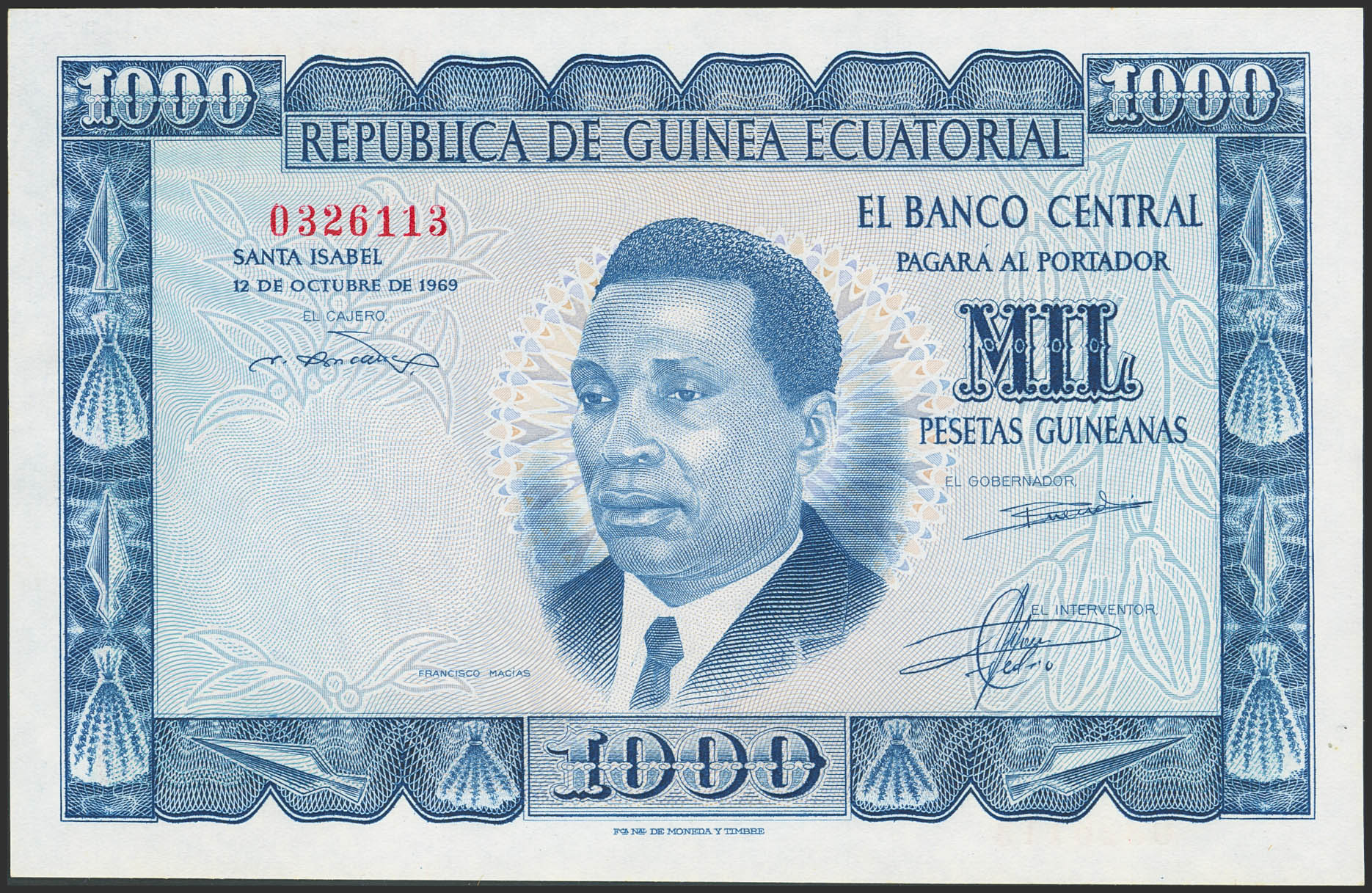 EQUATORIAL GUINEA. 1000 Pesetas. October 12, 1969. No series. (Edifil 2023: 3). Original finish. UNC.