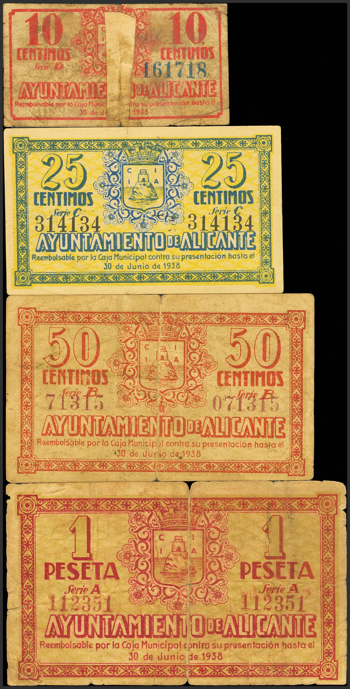 ALICANTE. 10 Centimos, 25 Centimos, 50 Centimos and 1 Peseta. June 17, 1937. No series, series C, series B and series A. (González: 507/10). Complete series. Fine/Good.