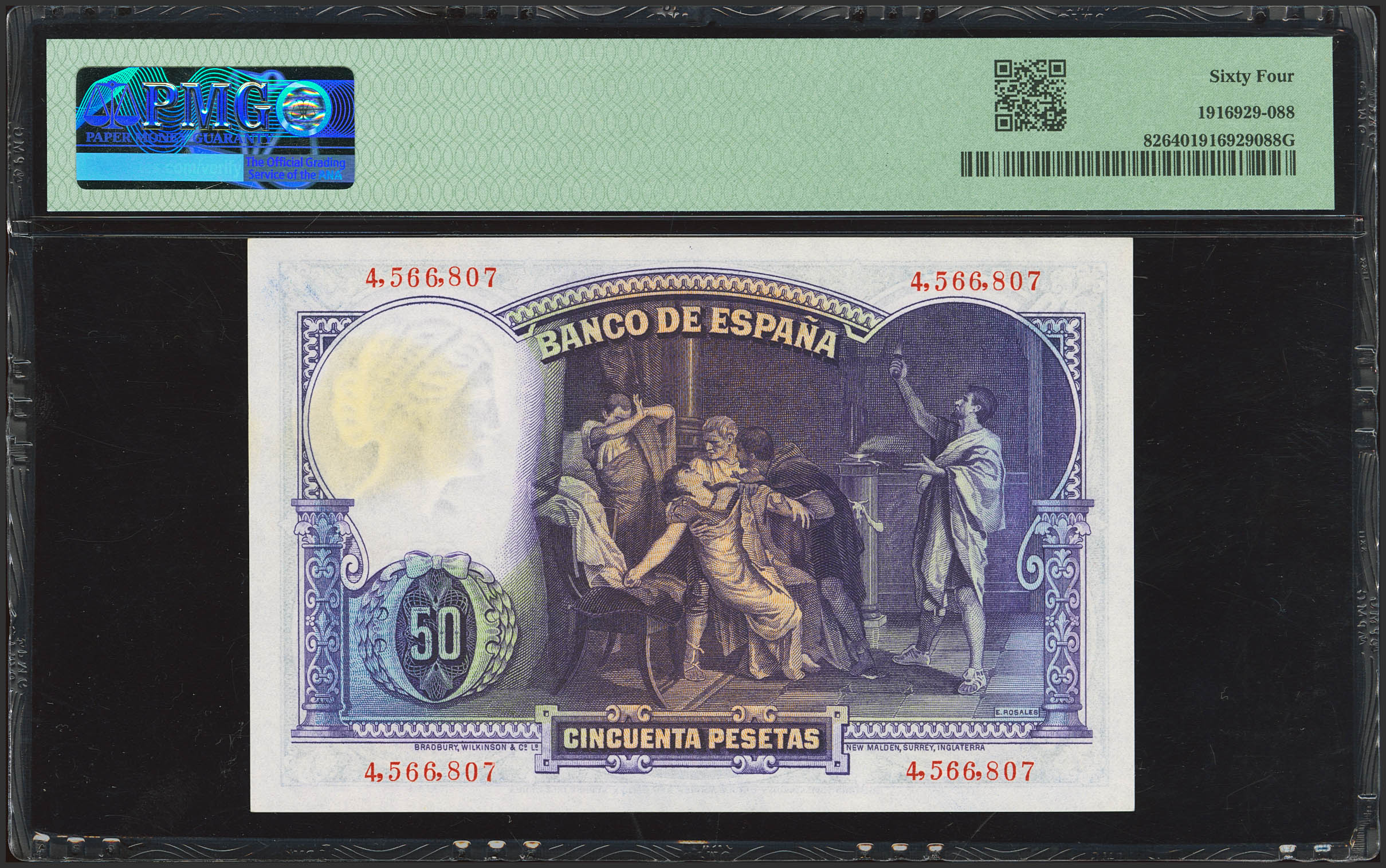 50 Pesetas. April 25, 1931. No serial number. (Edifil 2023: 359, Pick: 82). Uncirculated. PMG64 encapsulated.