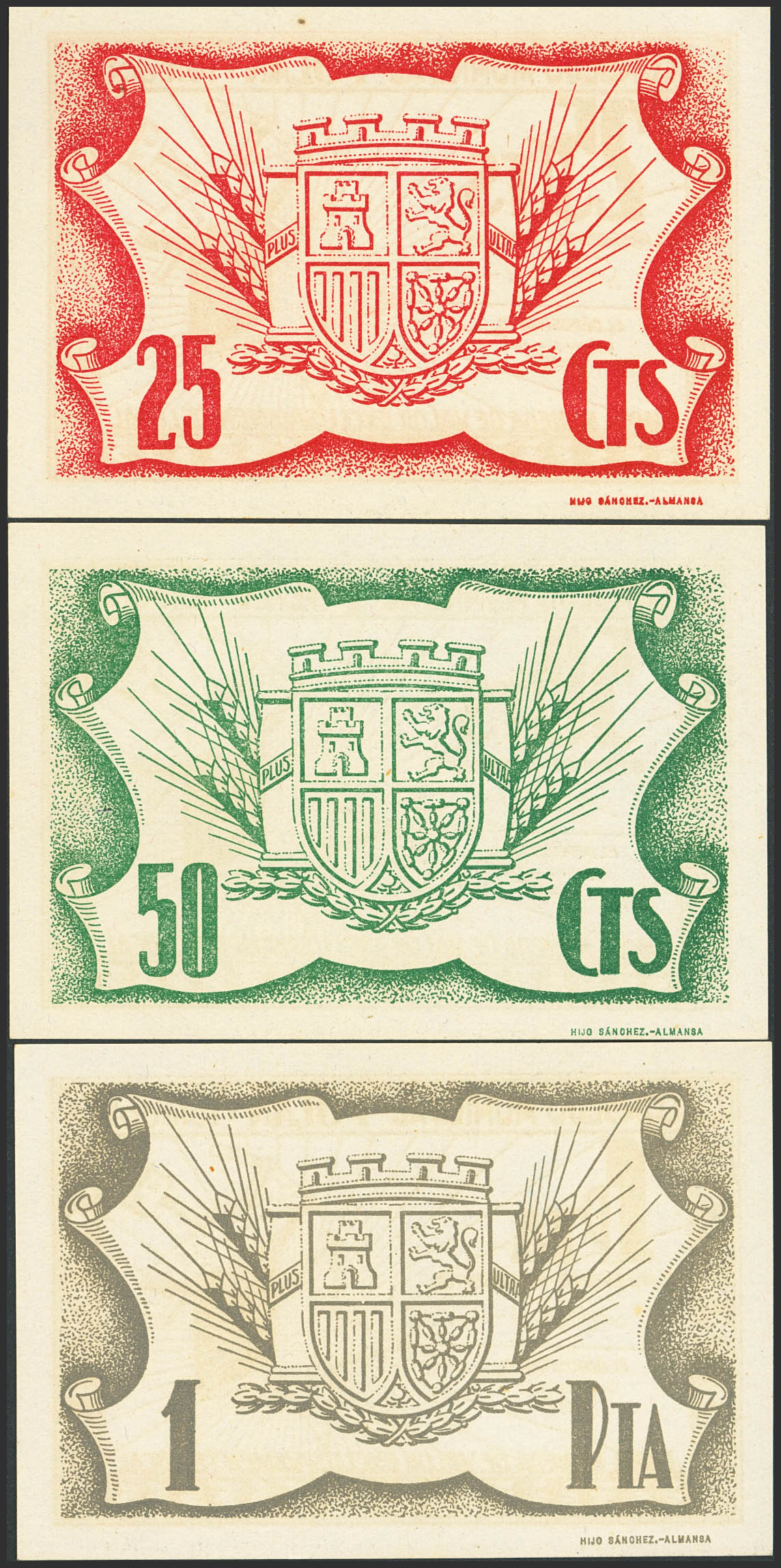 POLAN (TOLEDO). 25 Centimos, 50 Centimos and 1 Peseta. (circa 1937). (González: 4219/21). Unusual complete series, especially in this condition. UNC-/UNC--.