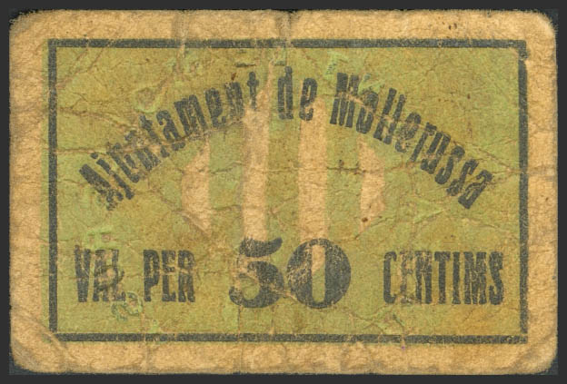 MOLLESURA (LERIDA). 50 Centimos. (1937ca). (González: 8709). Unusual. Fine-.