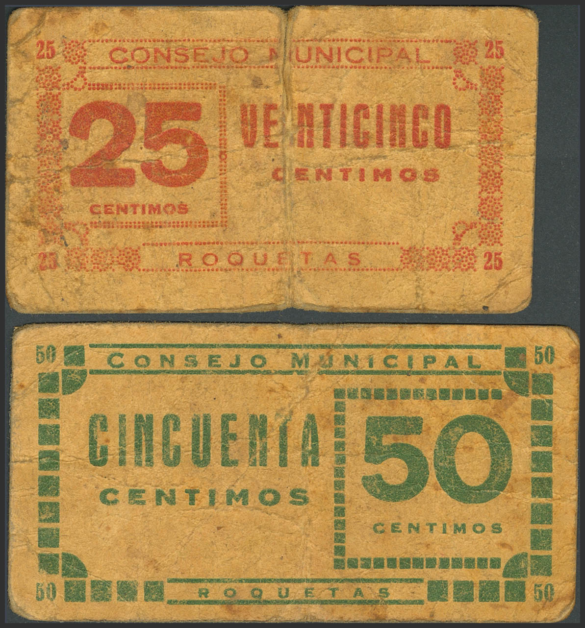 ROQUETAS (TARRAGONA). 25 Centimos and 50 Centimos. (1937ca). (González: 9730, 9732). Rare. Fine-.